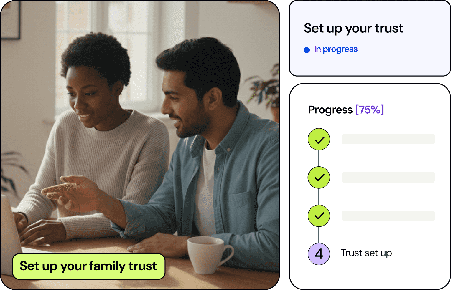 Our assisted trust product offers end-to-end trust establishment services, including drafting of the trust deed and electronic signing. We also provide options for payment of stamp duty, incorporation of a corporate trustee (where required), and obtaining an ABN/TFN number.