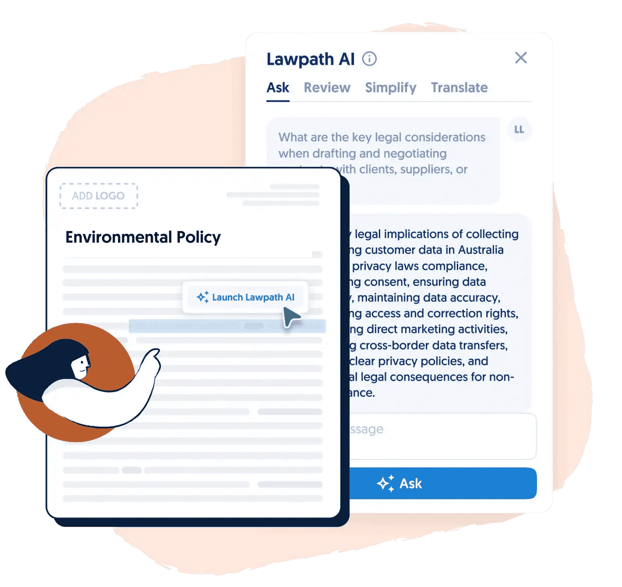 Copyright Lawpath Operations Pty Ltd ABN 74 163 055 954. Lawpath is an online legal service that makes it faster and easier for businesses to access legal solutions solely based on their own preferences. Information, documents and any other material featured on the Lawpath website, blog or platform is general in nature. You should always seek advice from a qualified professional to check if Lawpath's materials or services meet your particular circumstances. You can access in-house and 3rd party qualified professionals through certain products sold by Lawpath. Use of Lawpath and lawpath.com.au is subject to our Terms and Conditions and Privacy Policy.