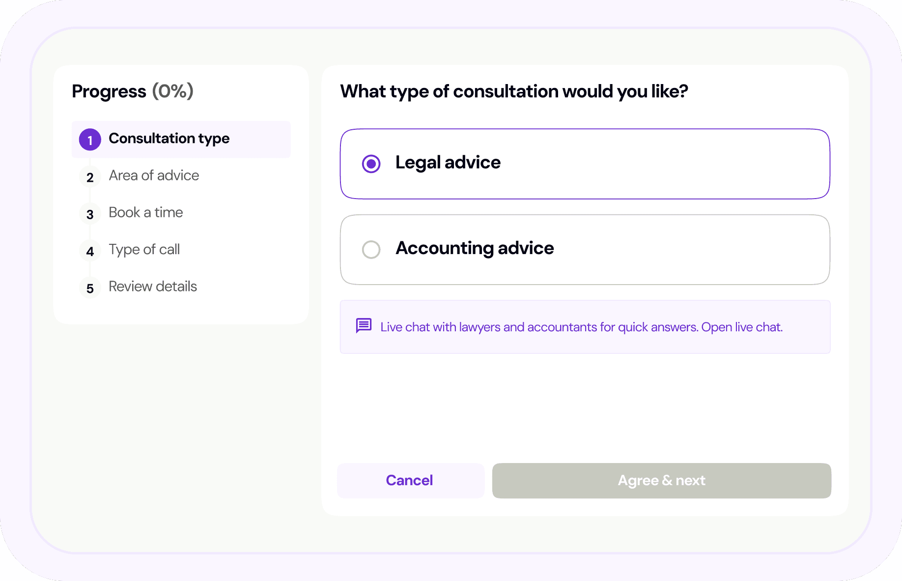Legal Advice, Accounting Advice or bundle and save 30%.