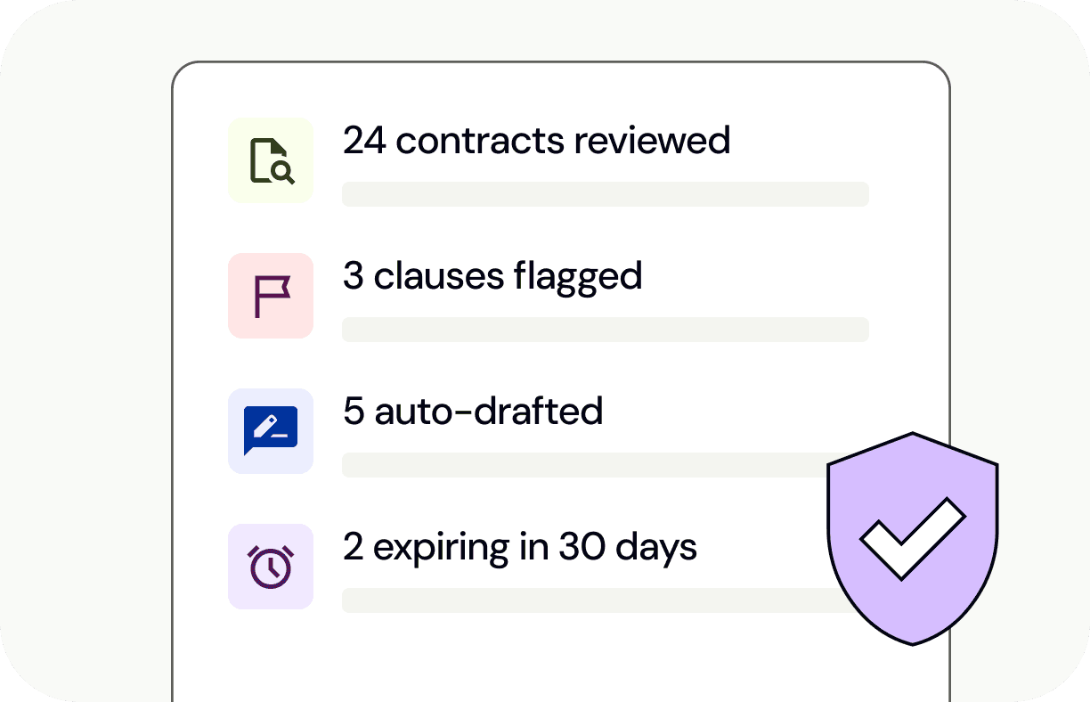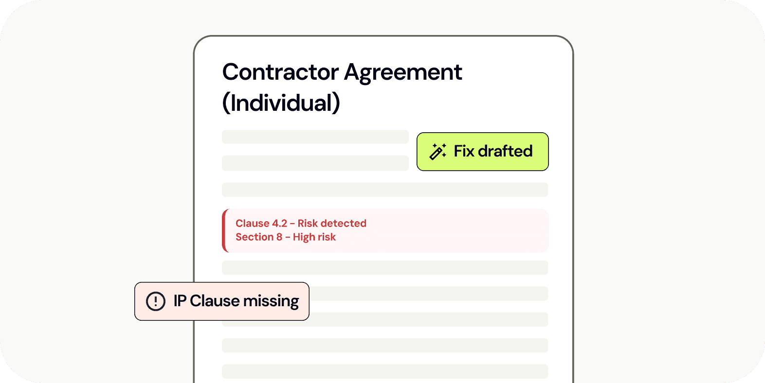 Atlas scans every clause in your documents and flags IP assignment gaps, non-compete issues, indemnity risks, missing confidentiality terms, and clauses that have expired or are about to.