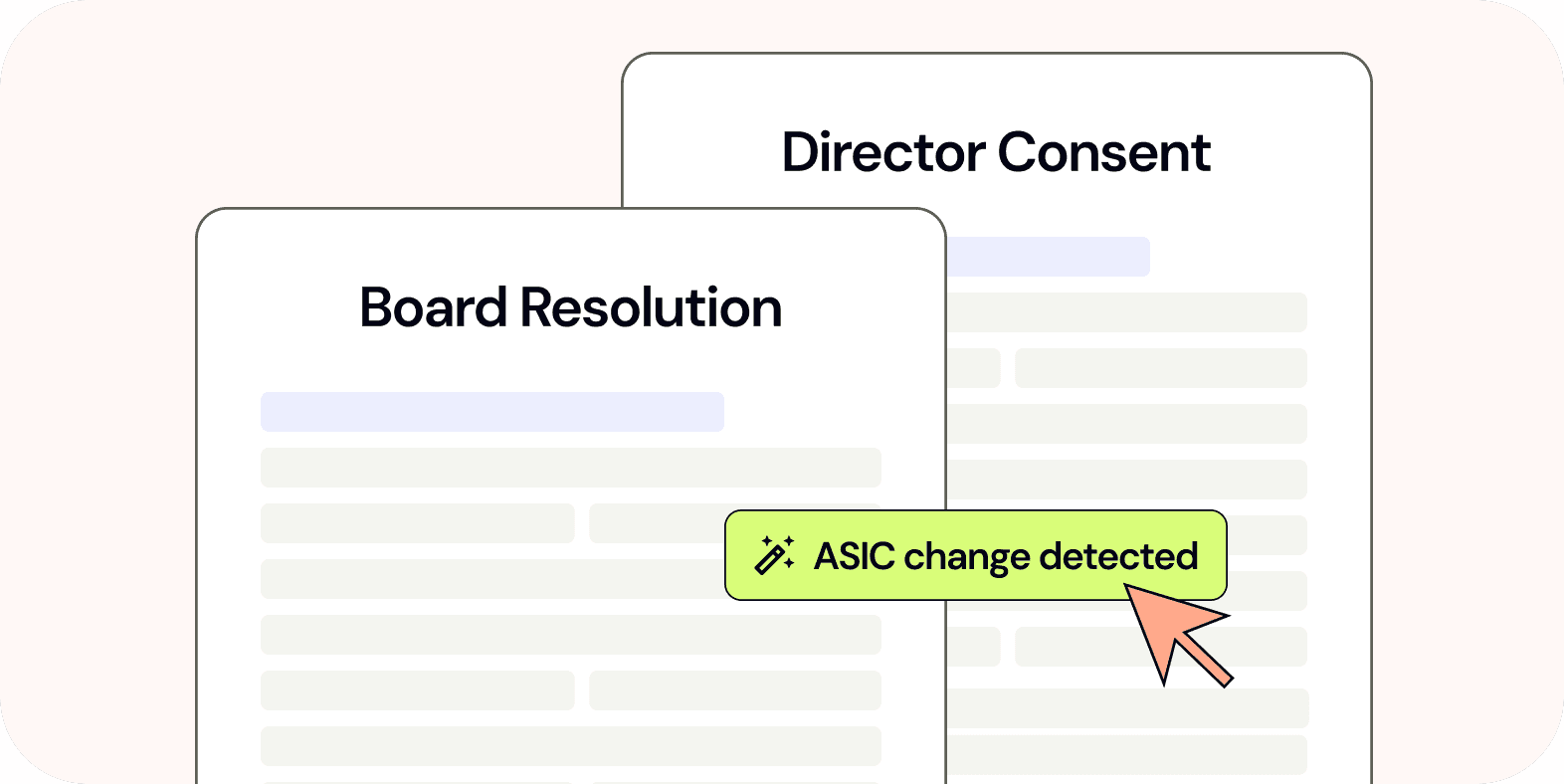 Atlas detects the ASIC change and prepares the required board resolution, consent to act as director, and updates to your shareholder agreement. All documents are pre-filled and ready to sign.