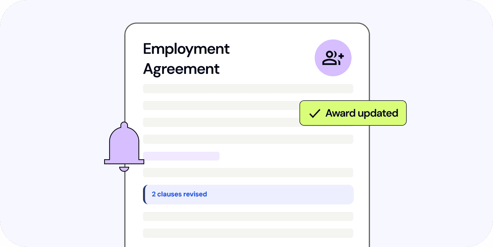 Within hours of the award change, Atlas maps the new rates to every affected employment contract on your account. It highlights which clauses need updating, drafts the amendments, and notifies you for approval.