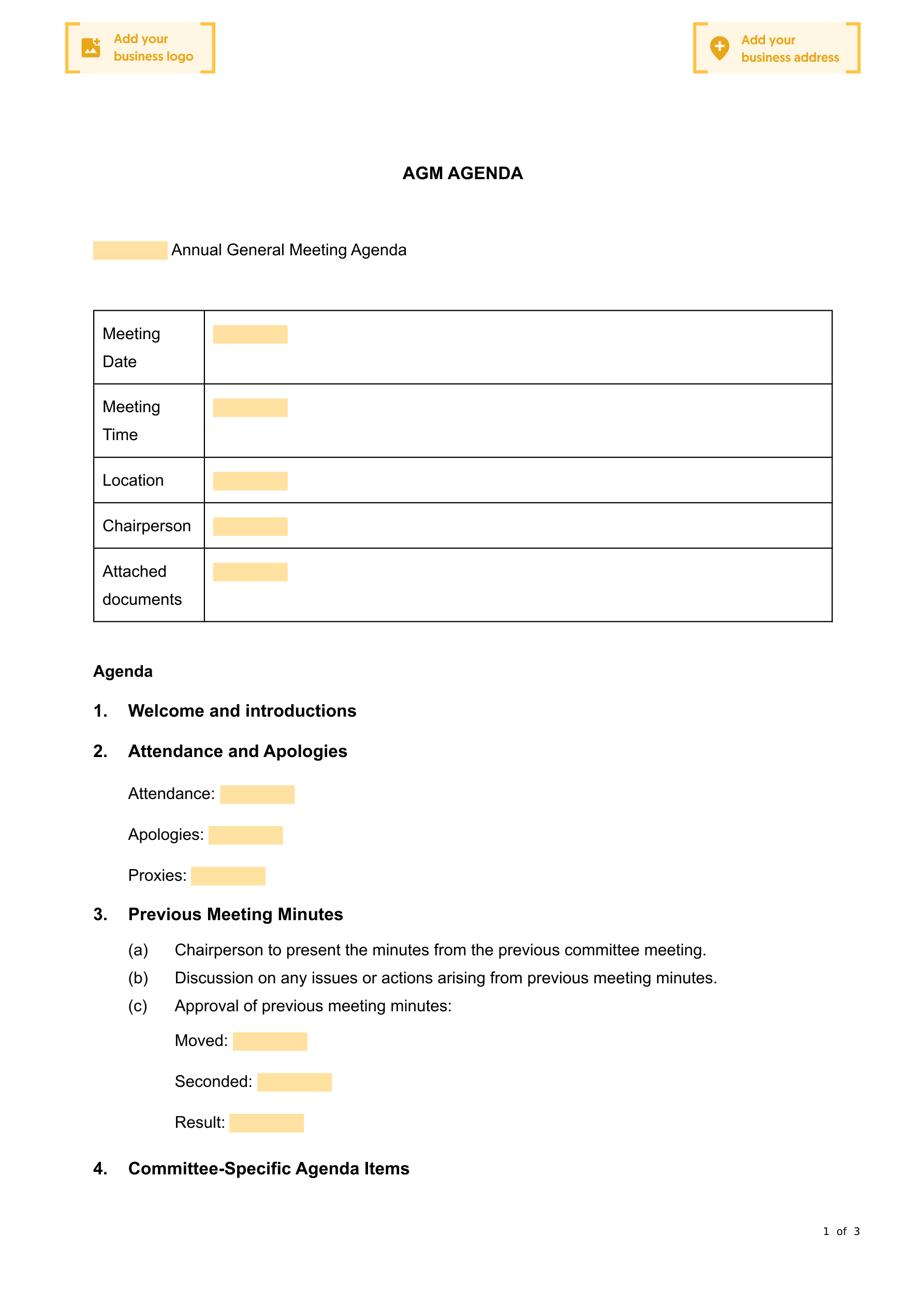 This agenda has been adapted from a template provided by the Australian Charities and Not-for-profits Commission.