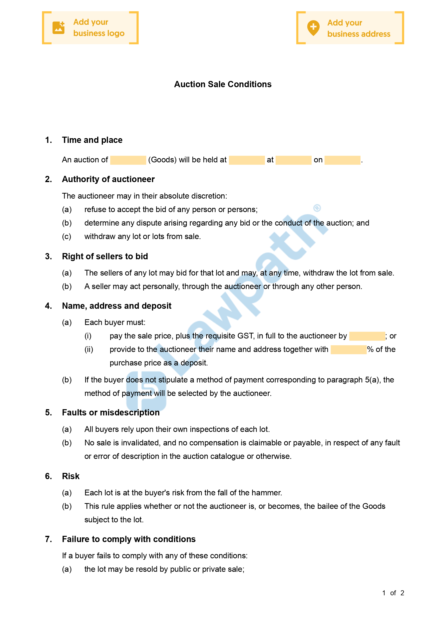 Complete your free Auction Terms and Conditions (Sale of Goods) with our checklist