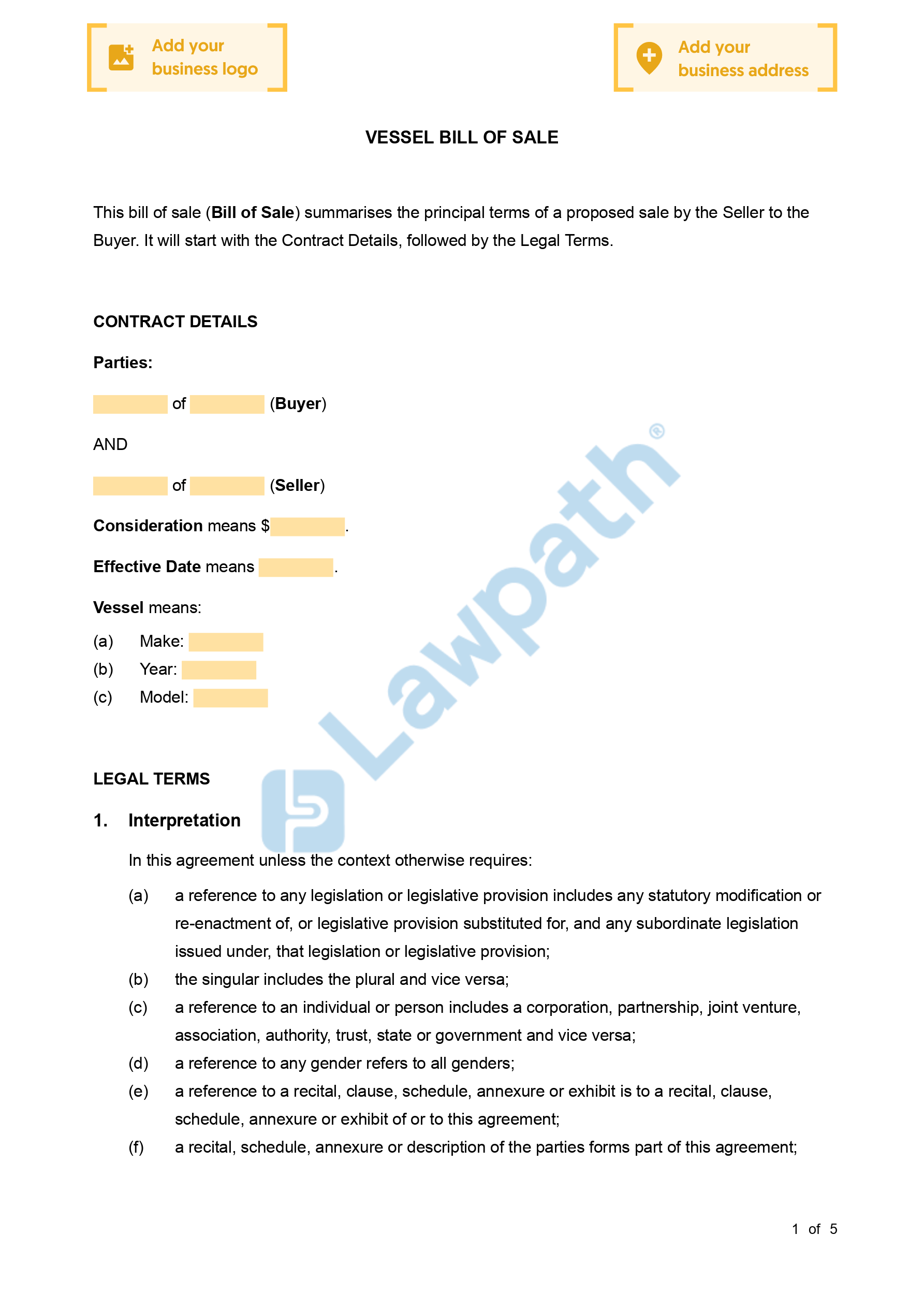 - Boat sales contract