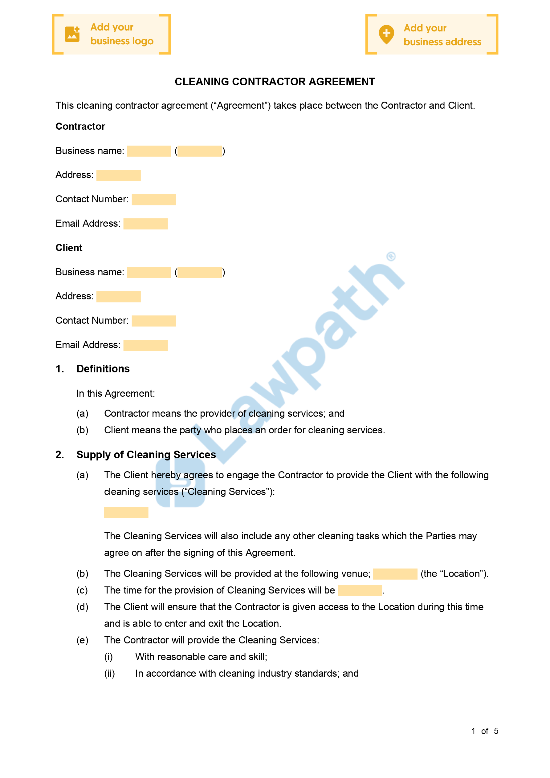 A Cleaner Contract is a document which creates a series of legal obligations between the cleaning service provider and the client.