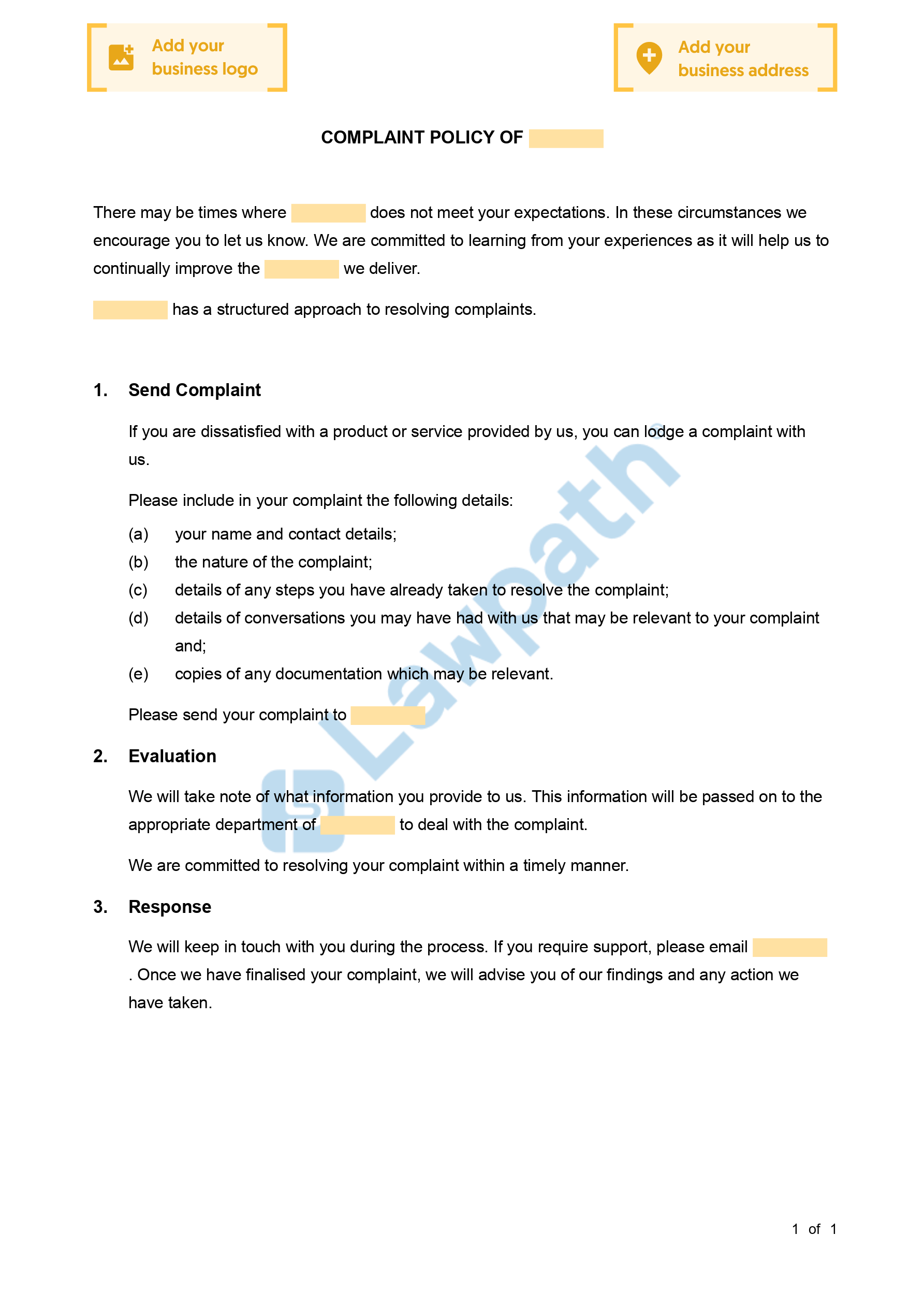 Complete your free Complaint Policy with our checklist