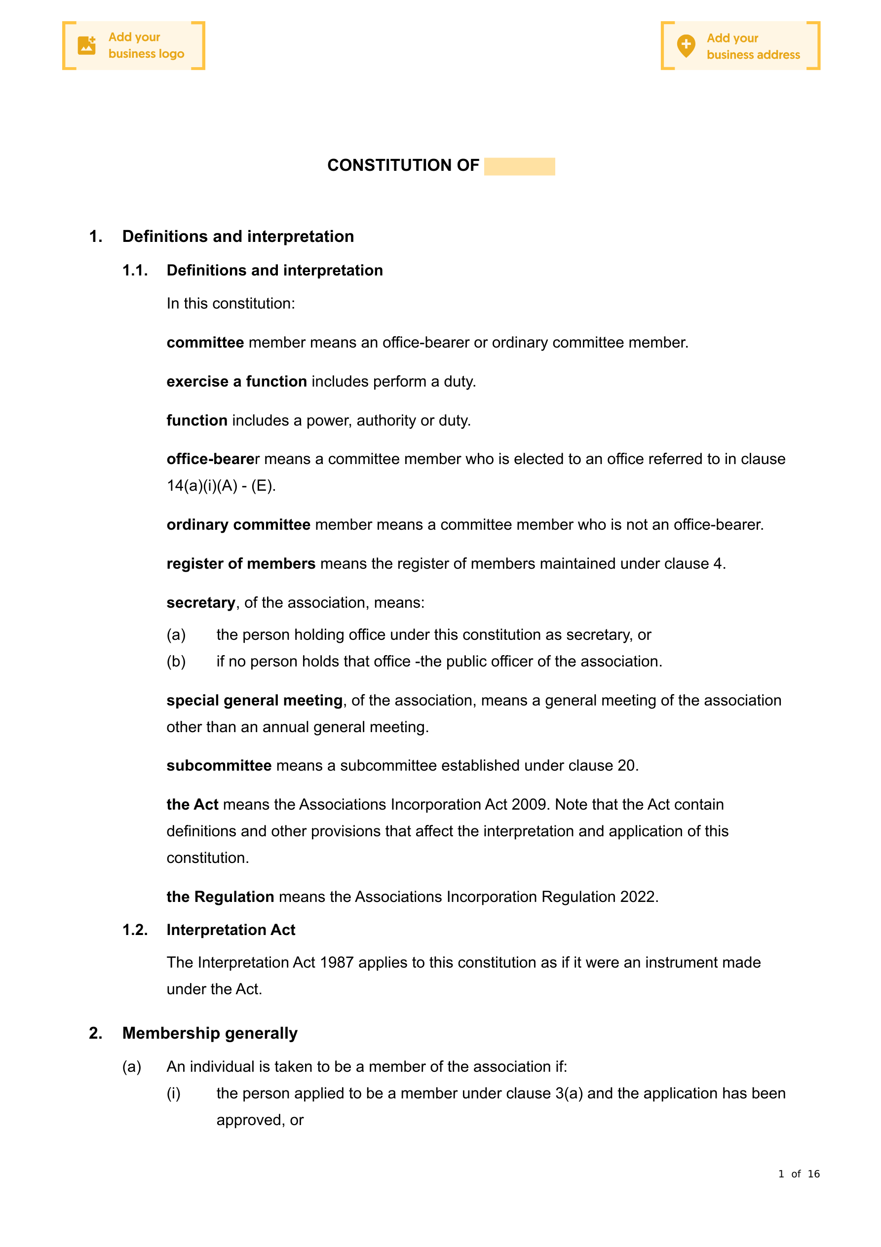 View Sample Constitution for NSW Incorporated Association (Not for Profit)