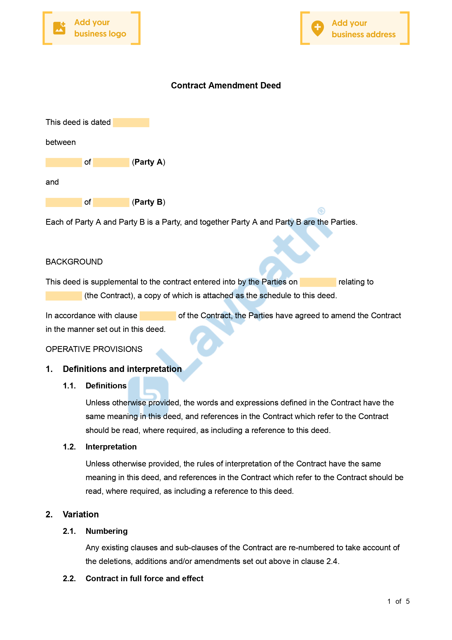 A Contract Amendment Deed can be used when the parties to a contract wish to amend the contract.
