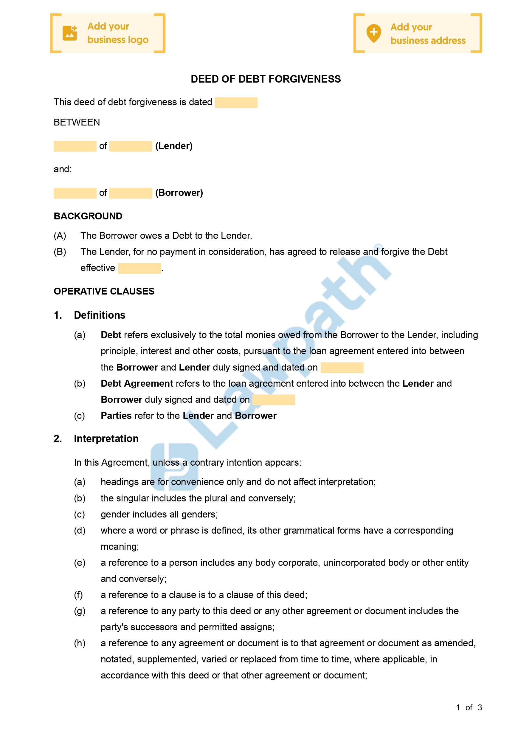 - Maintain a positive relationship between the debtor and the creditor. By formalising the forgiveness of the debt, it can demonstrate goodwill and a willingness to work together in the future.