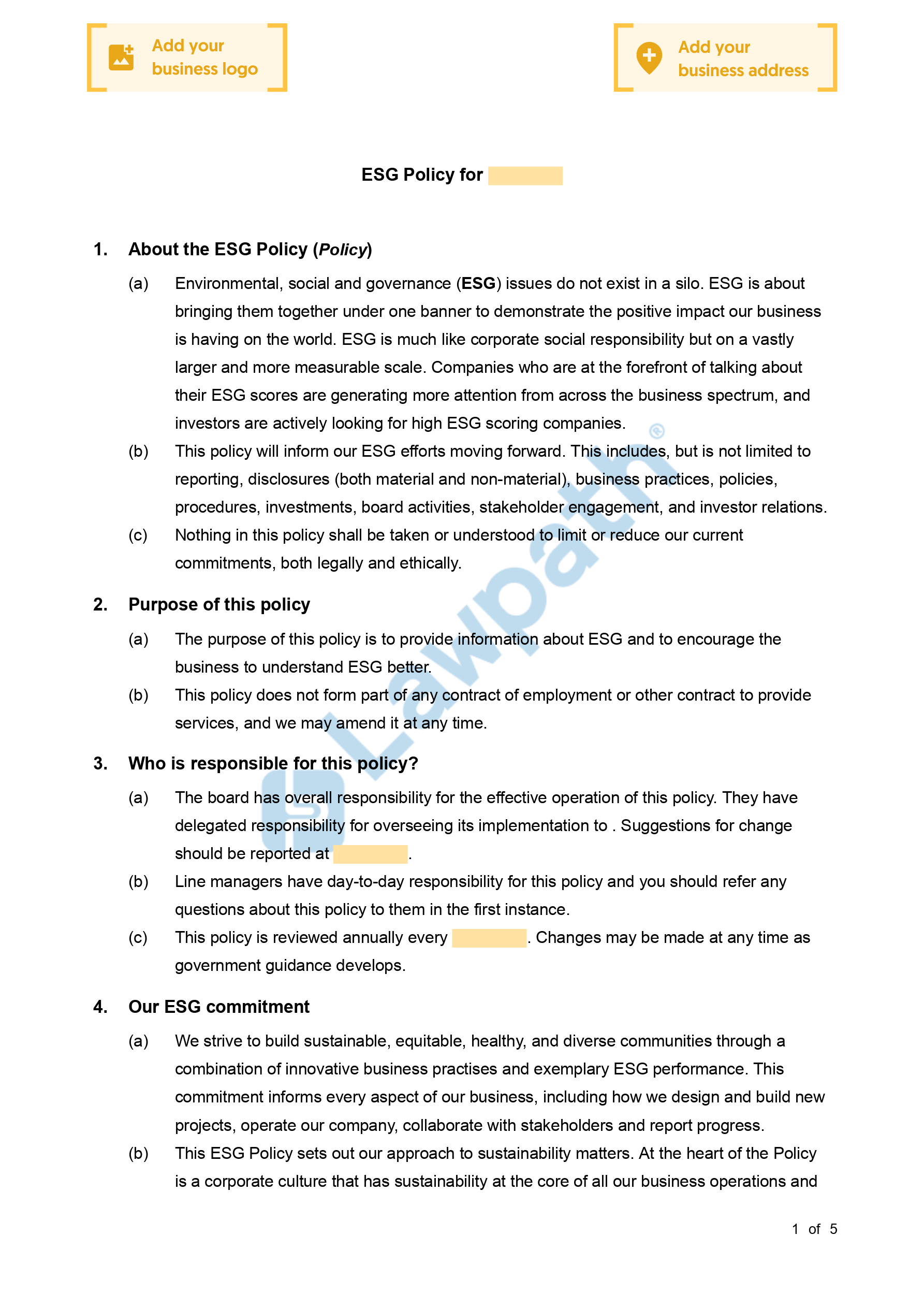 Use this ESG Policy if:
