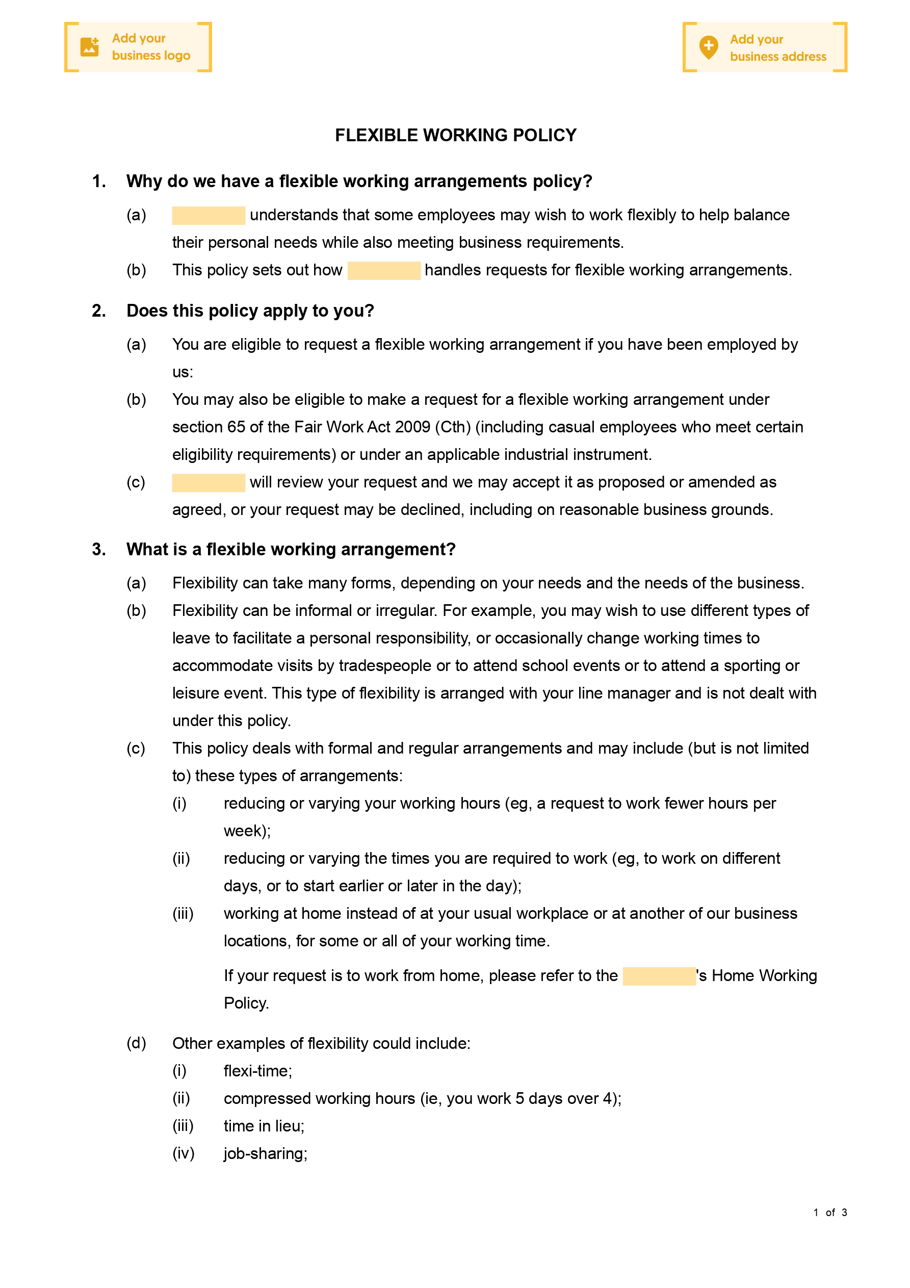 A Flexible Working Policy document clearly describes the steps that an employee must follow in order to request a flexible working arrangement.