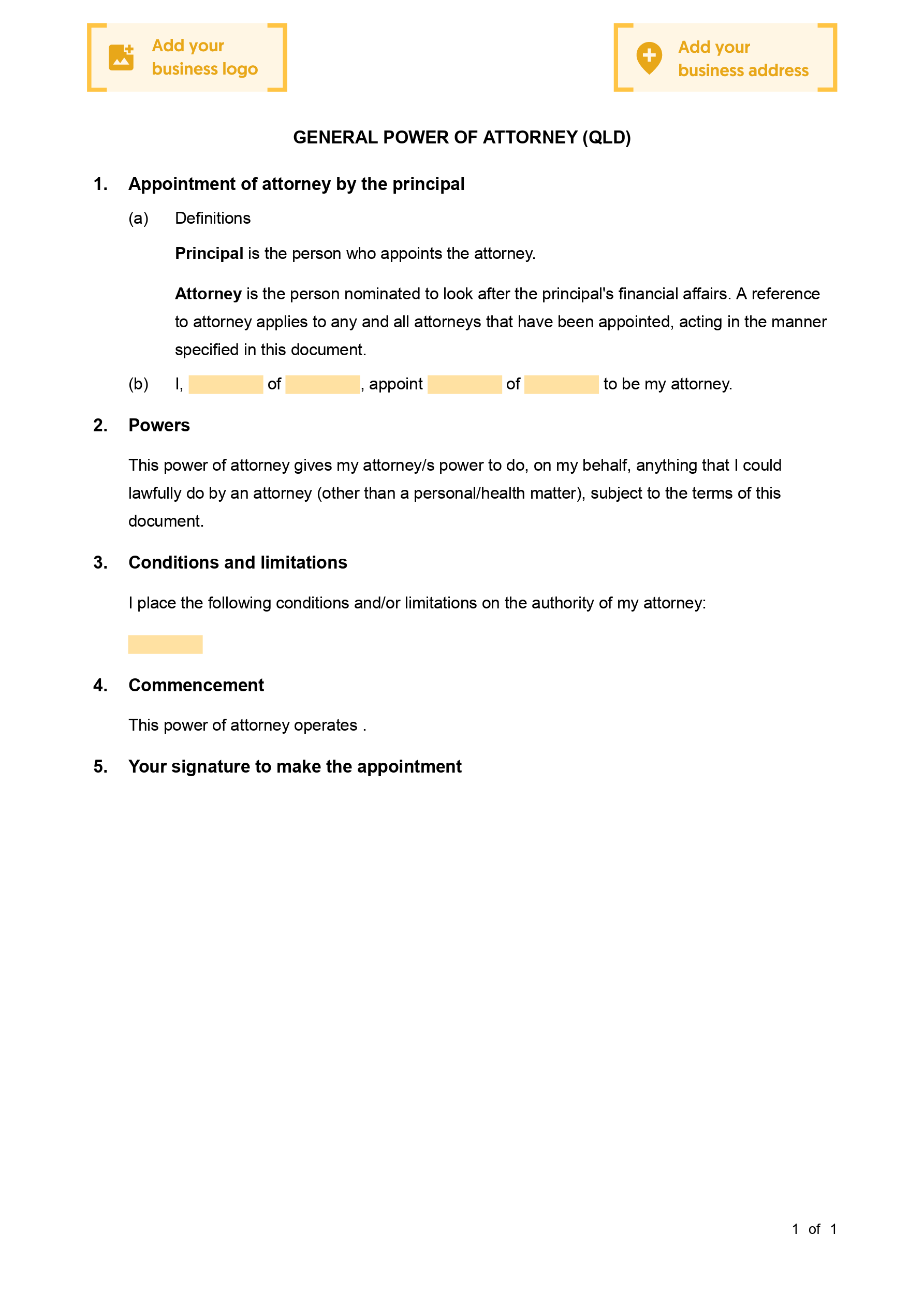 View Sample General Power of Attorney (QLD)