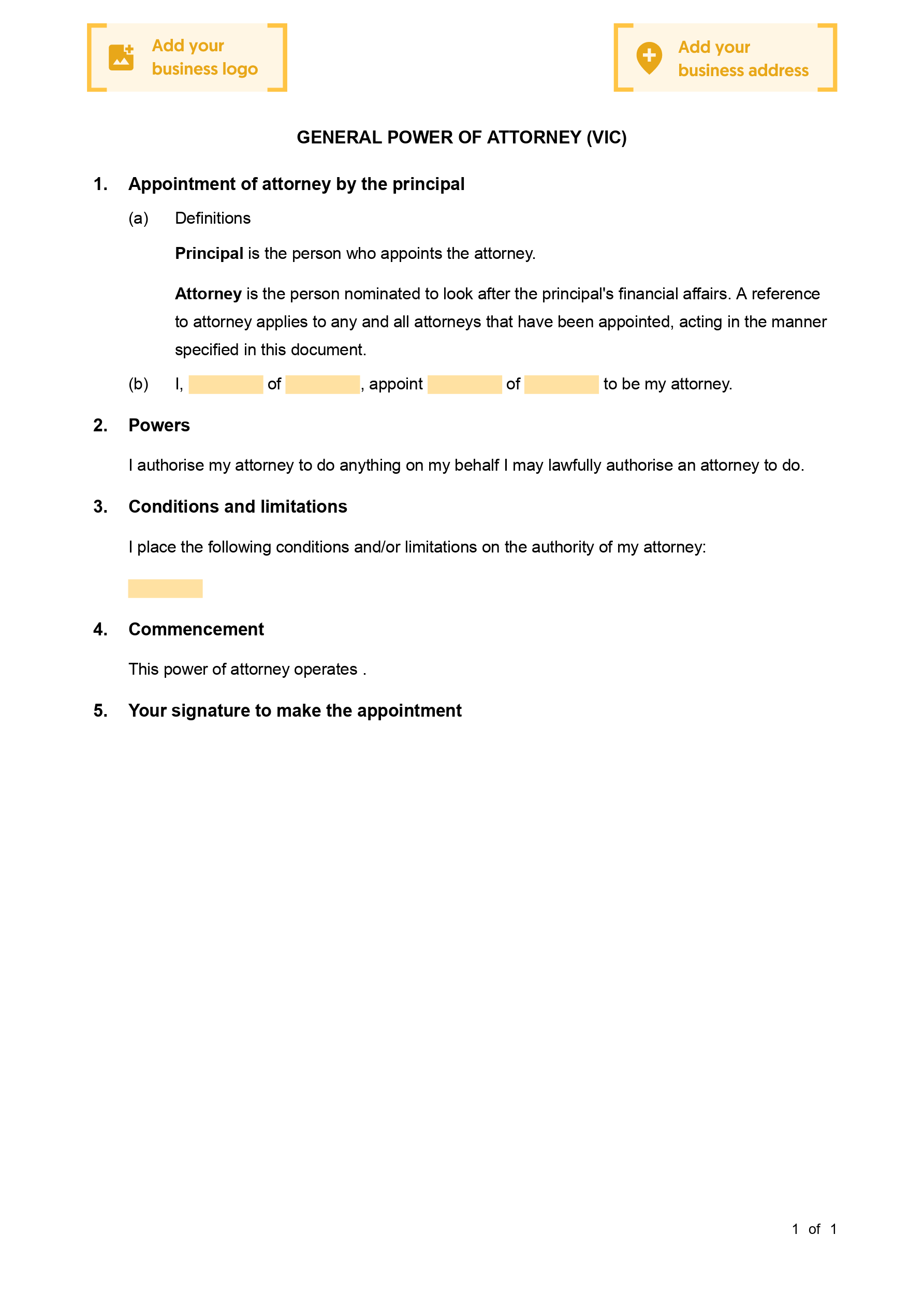 View Sample General Power of Attorney (VIC)