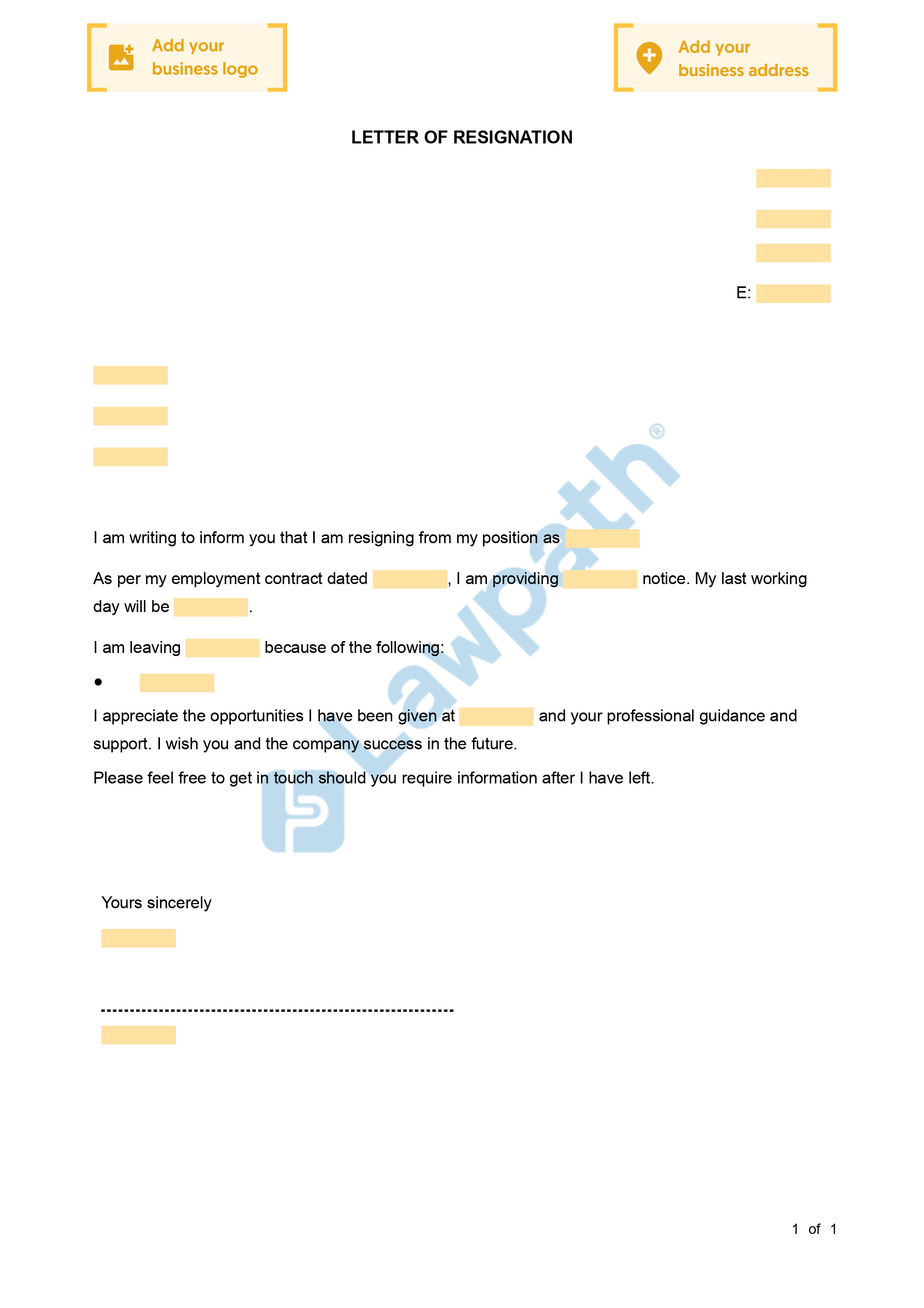 Complete your free Letter of Resignation with our checklist