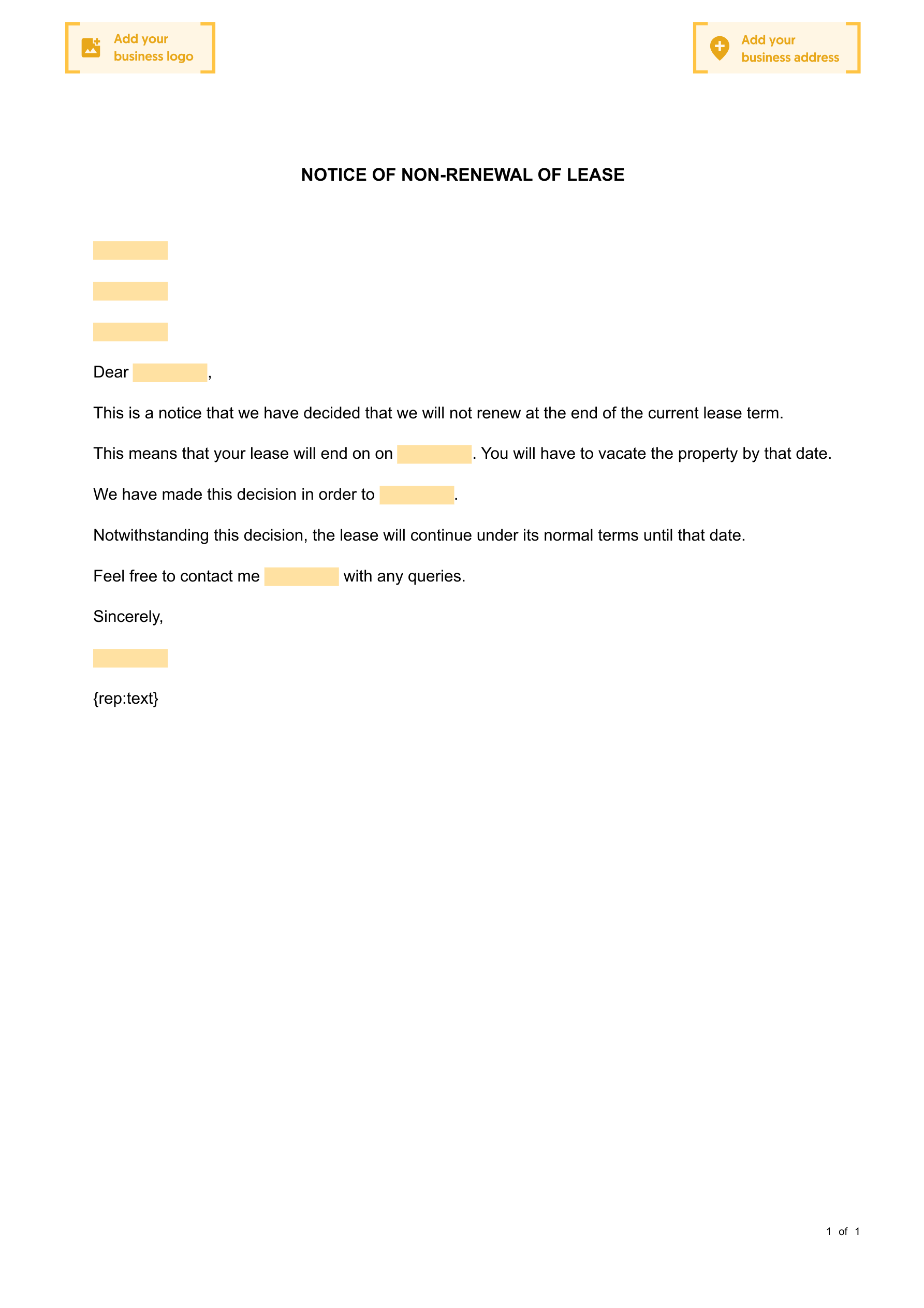 Notice of Non-Renewal of Lease (Commercial Lease)