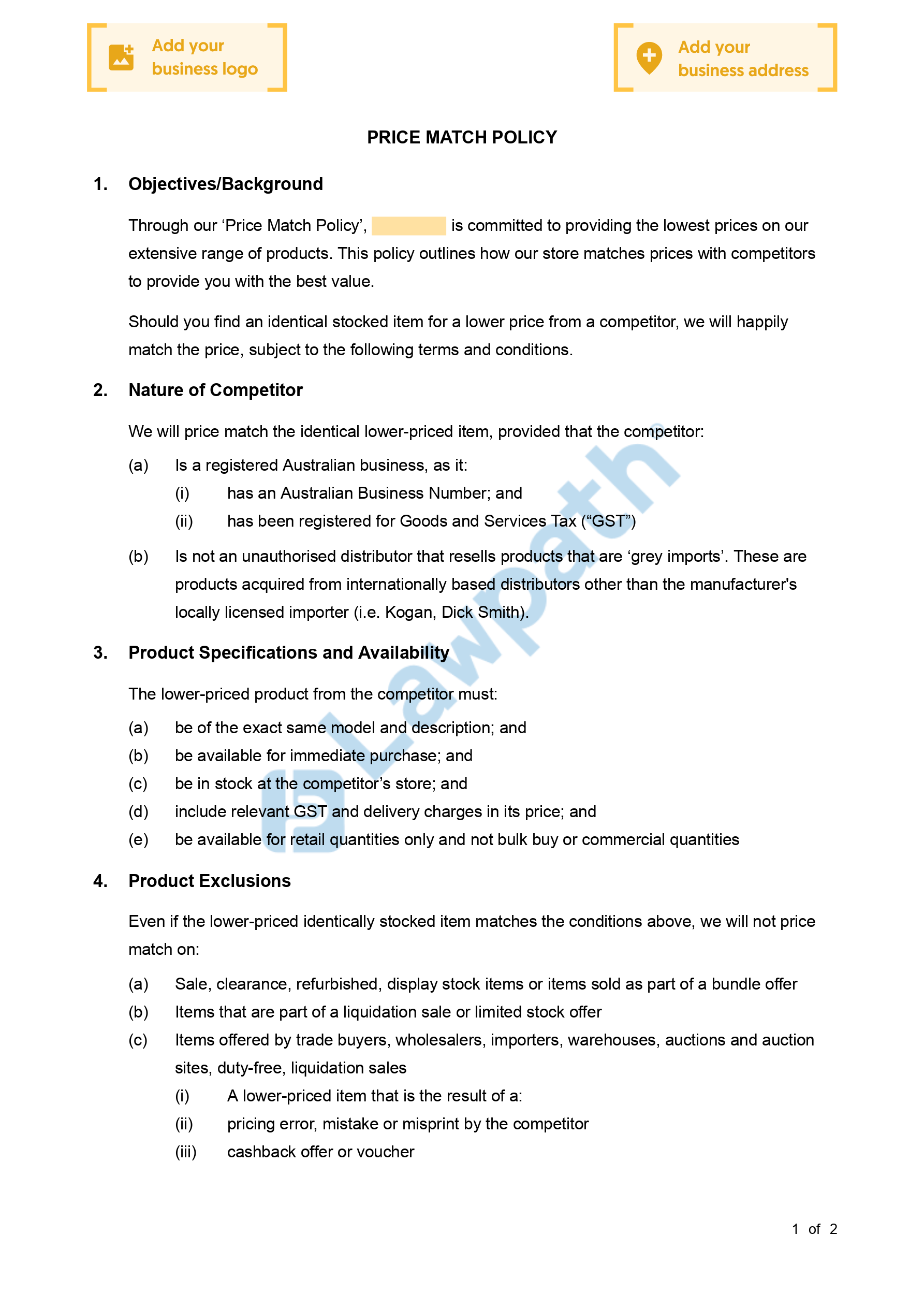This Price Match Policy also provides businesses with options on when items can be price matched and how the customer must raise their request to do so.