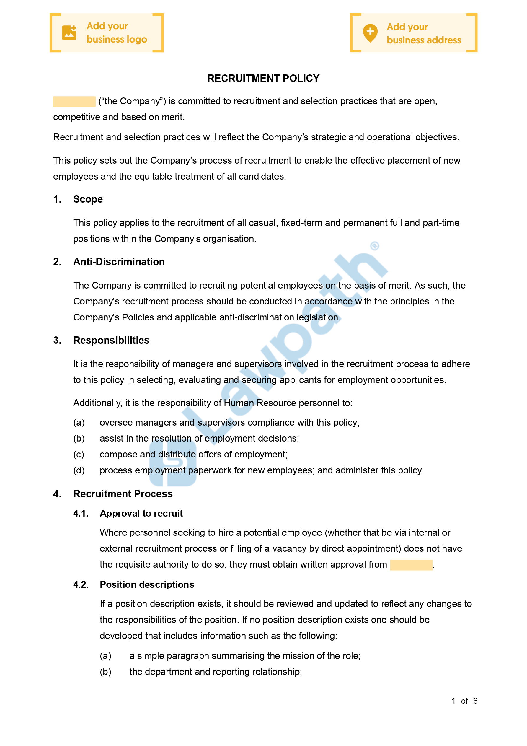 Complete your free Recruitment Policy with our checklist