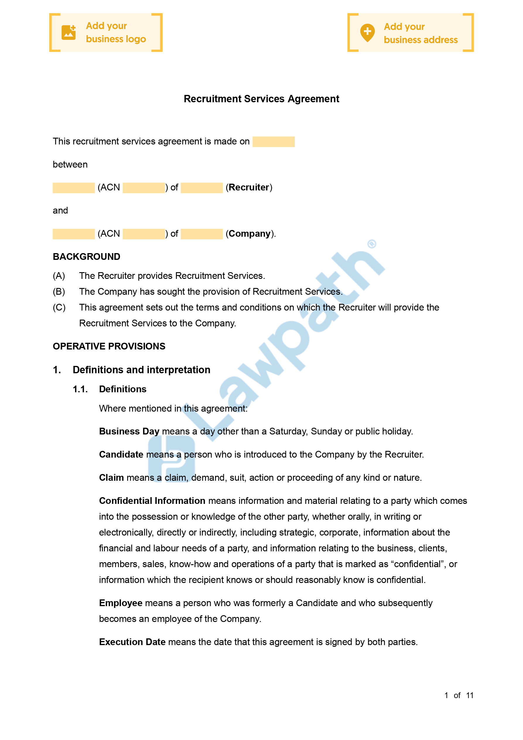 Complete your free Recruitment Services Agreement with our checklist