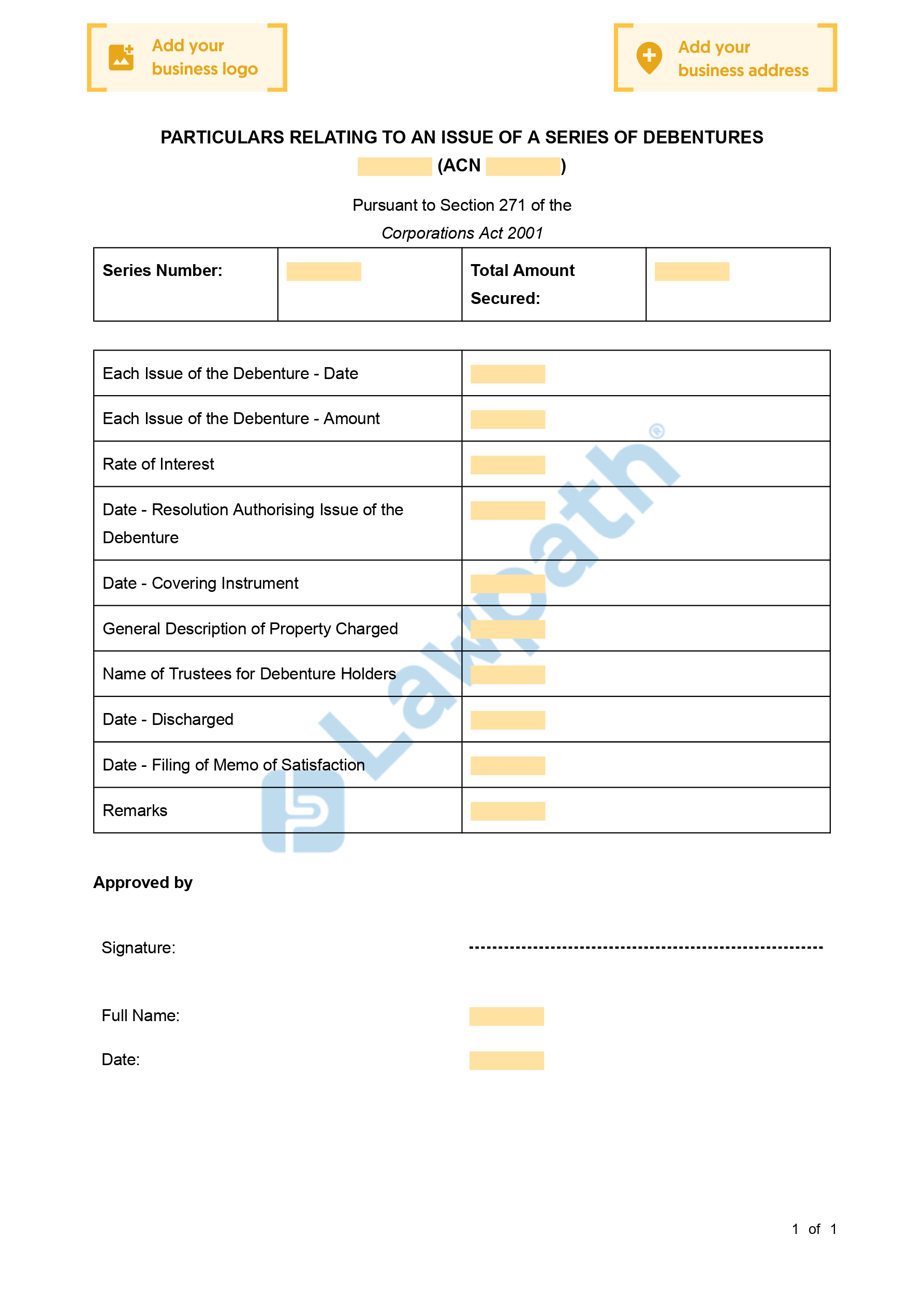 A Register of Debentures is a record of documents issued by your company that acknowledges or creates existing debt, or makes a provision for the repayment of a future loan.