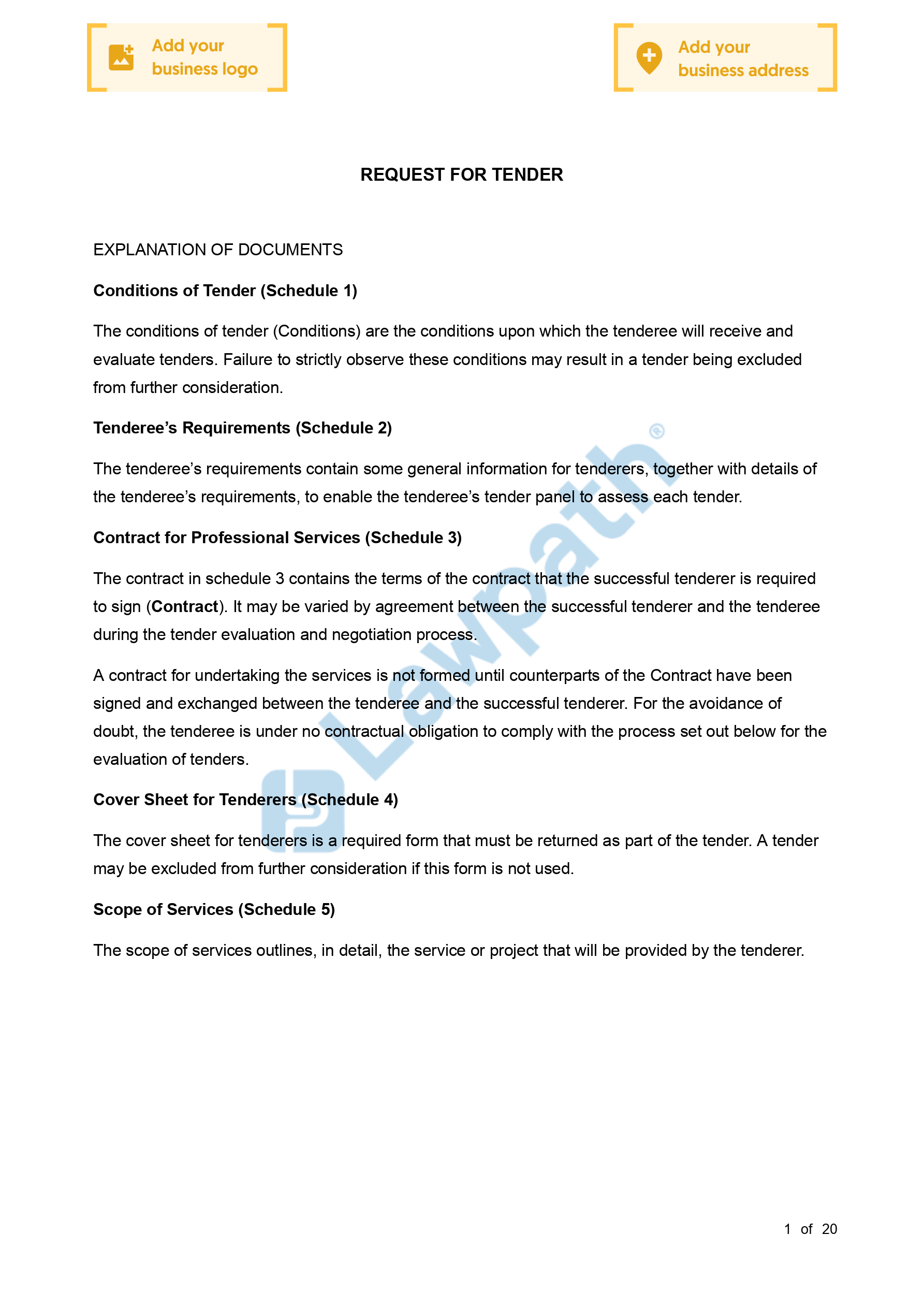 A Request for Tender is a serious of documents that allows you to solicit services through a competitive tender.