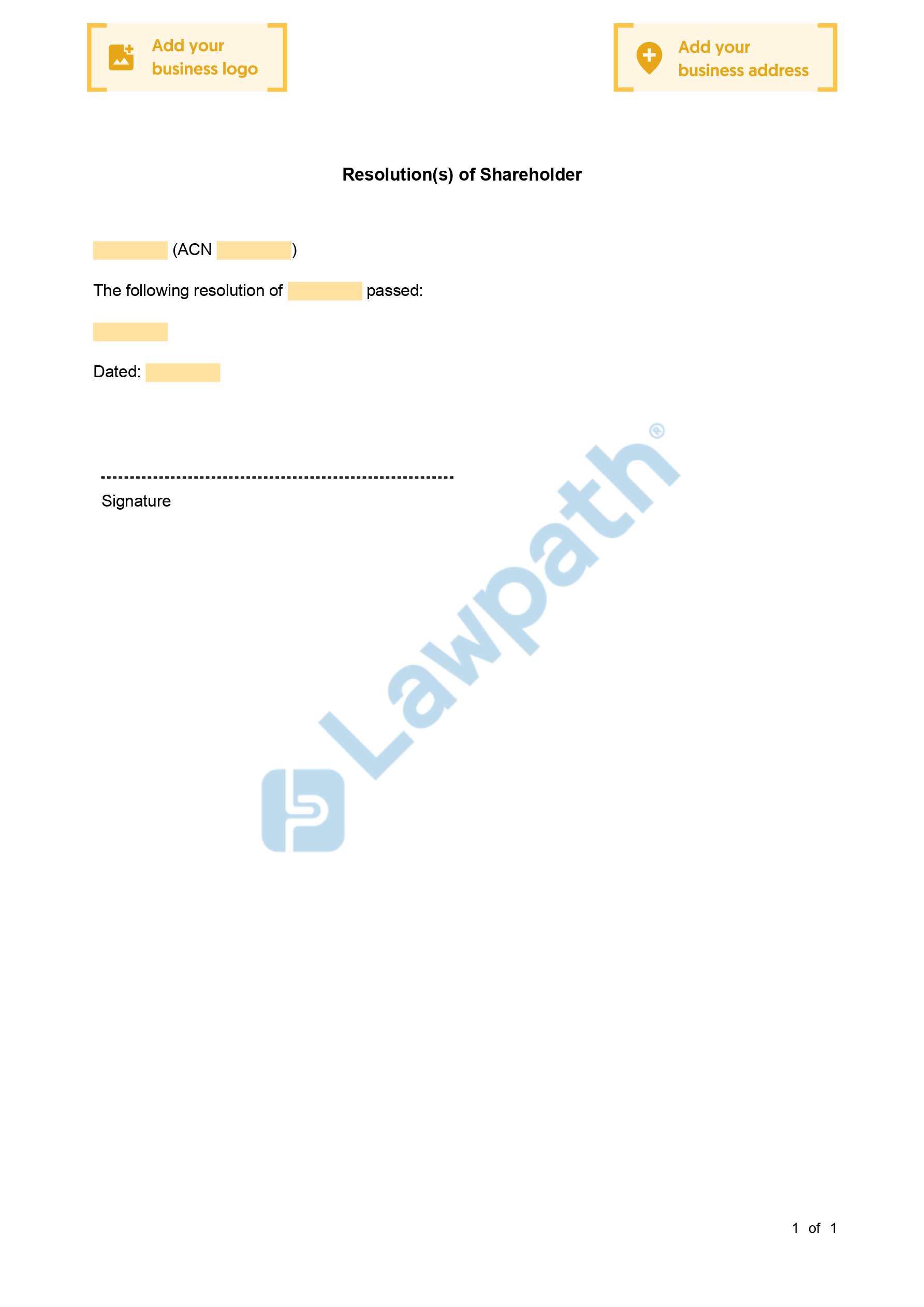 This Resolution can be used to pass one or multiple shareholders' resolutions by the sole shareholder of a company.