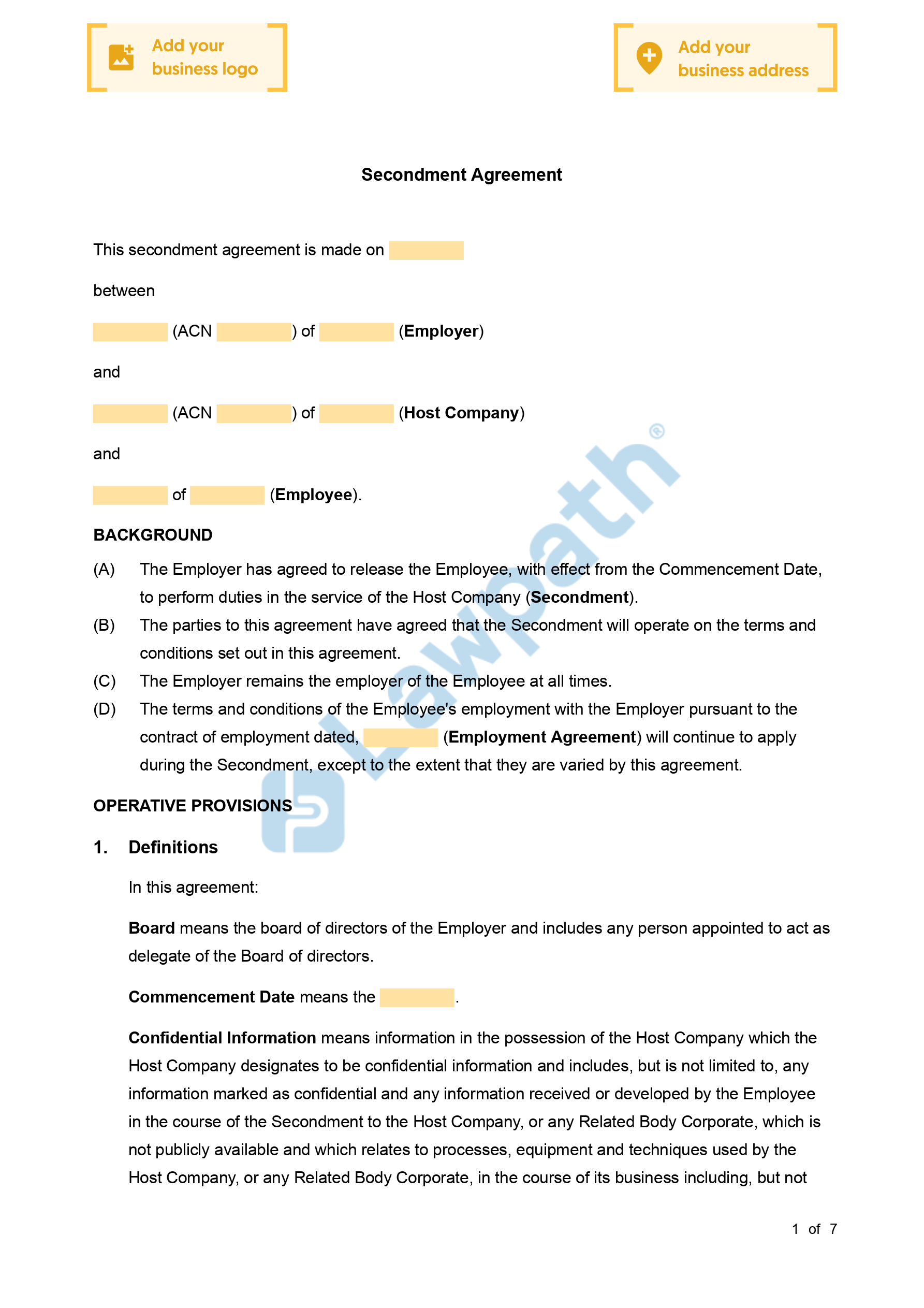 - Protect interests: This agreement sets out the terms of the secondment, including the responsibilities and obligations of both parties, protecting your interests in the event of a dispute.