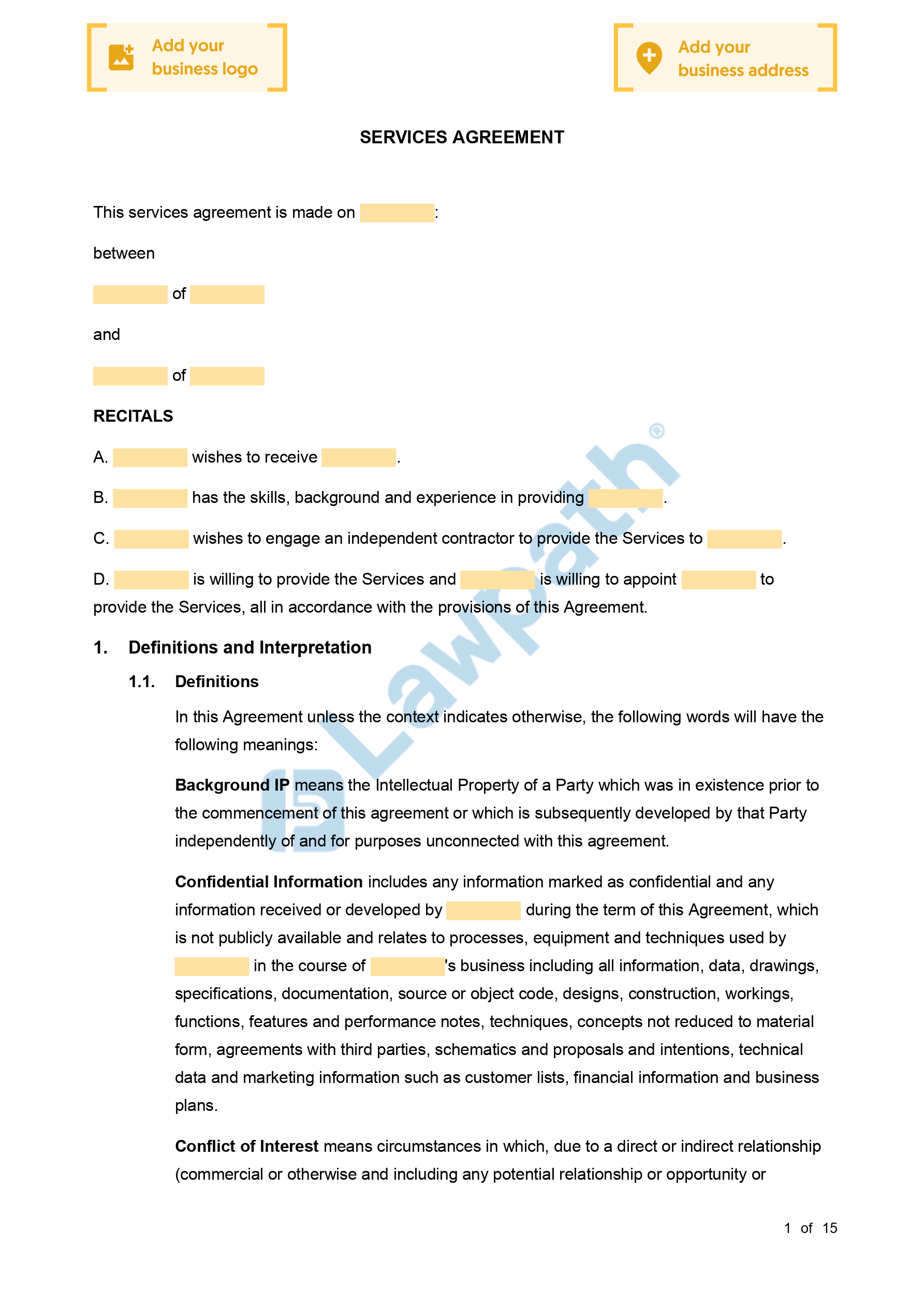 A Services Agreement (Pro-Client) can be used if you provide services or engage services from another entity. This version of the Services Agreement is drafted in favour of the client from a commercial and legal perspective.