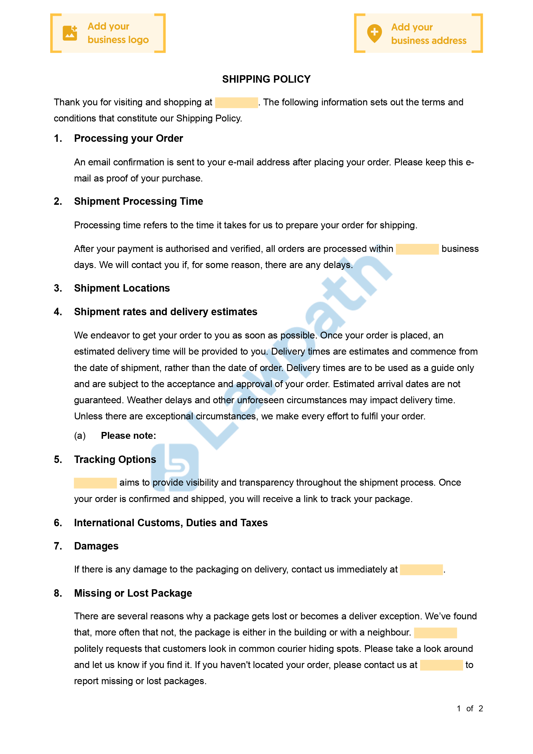 Complete your free Shipping Policy with our checklist