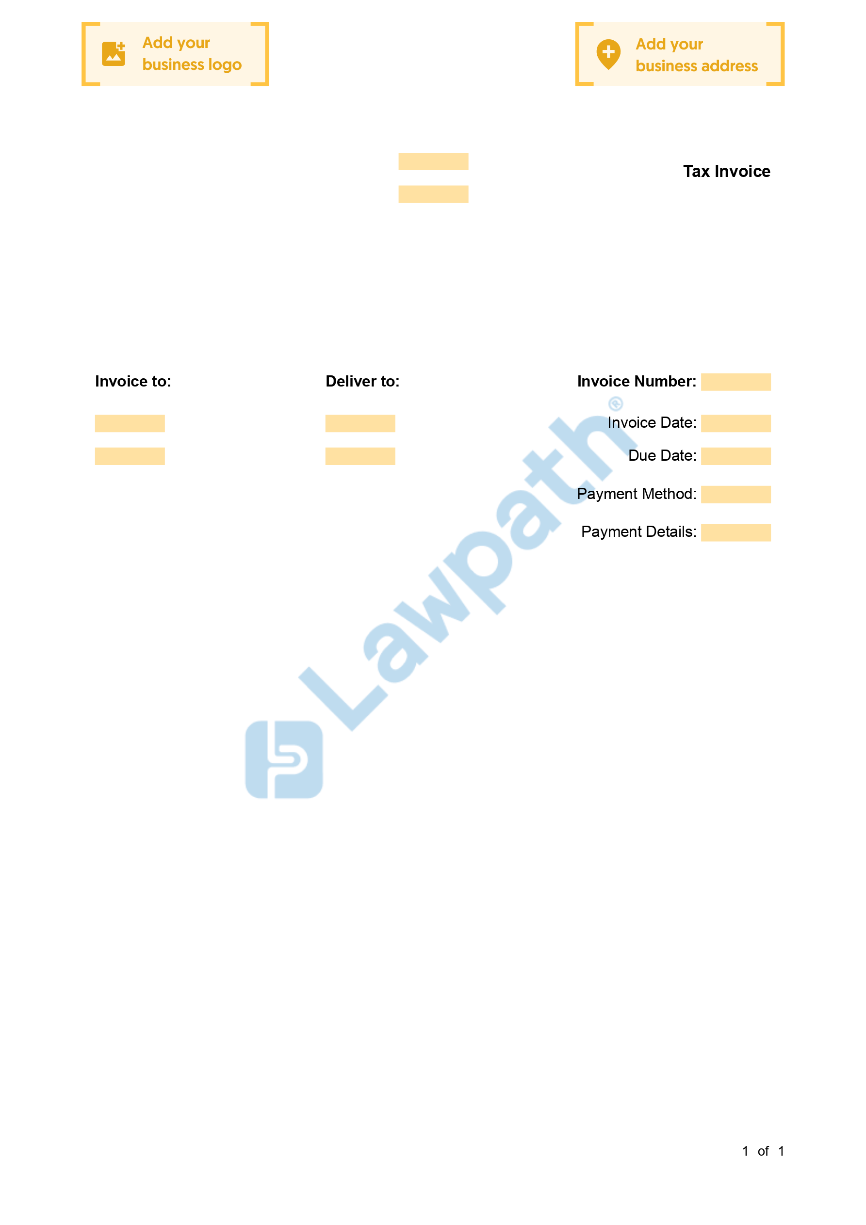 A Tax Invoice can be used as formal request for payment, or as a record of a transaction that specifies the tax paid on the transaction. It is suitable for businesses registered in Australia.