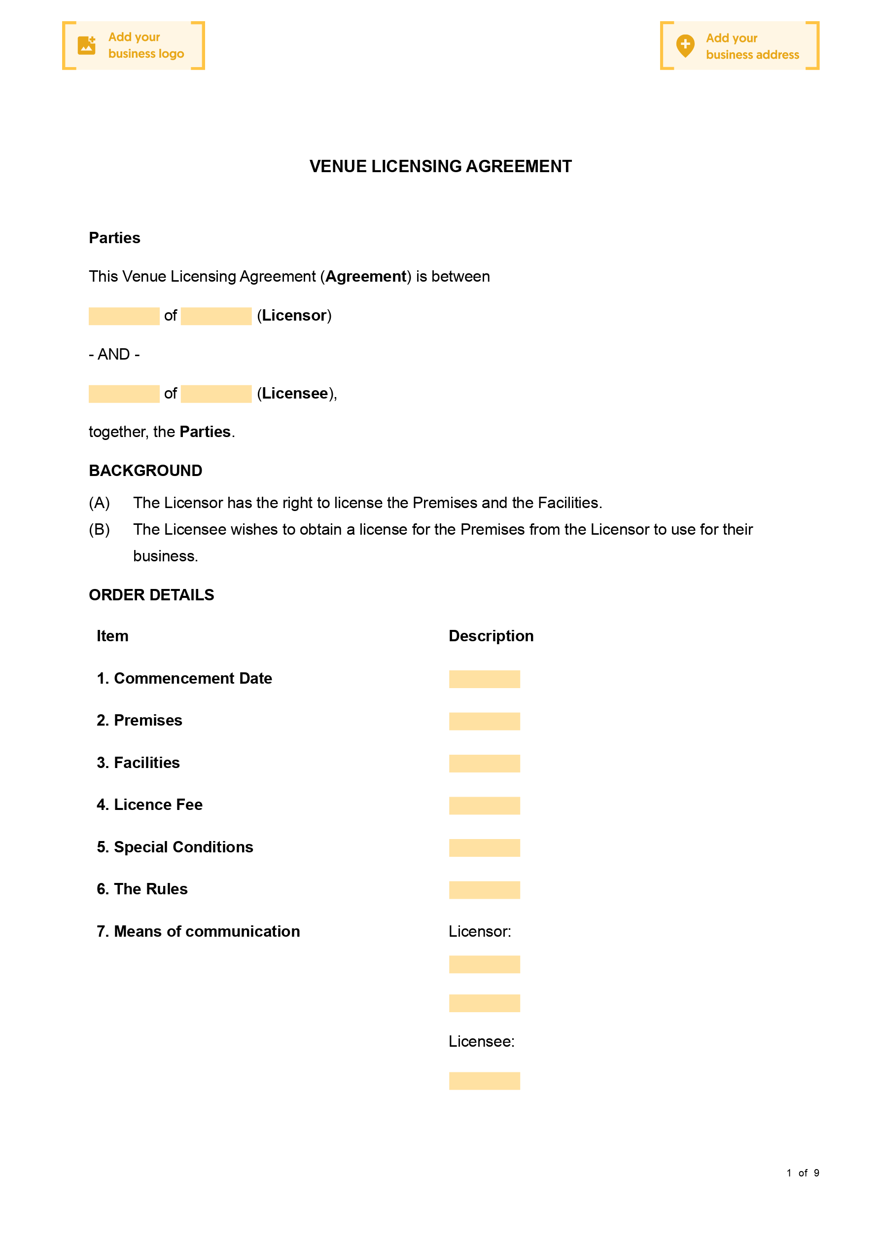 This Venue Licensing Agreement sets up a license for a venue, an arrangement similar to a lease but with more flexibility.
