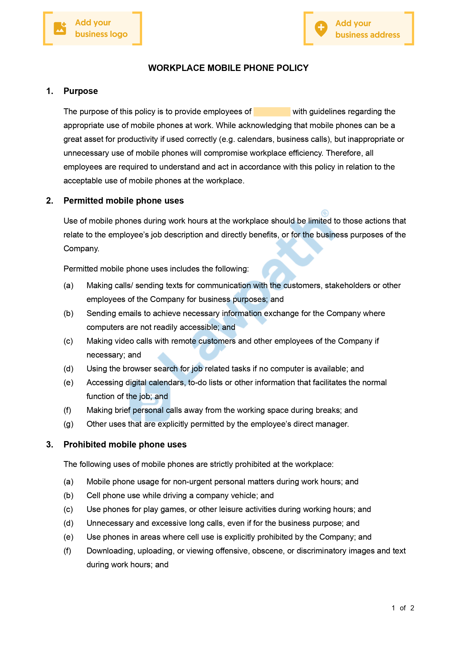 A Workplace Mobile Phone Policy cuts down on distraction at work by making it clear when it's appropriate to use a mobile phone during work hours.