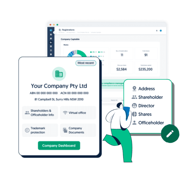 eSign and manage documents, company compliance, set up a virtual office and protect your IP via your business dashboard.