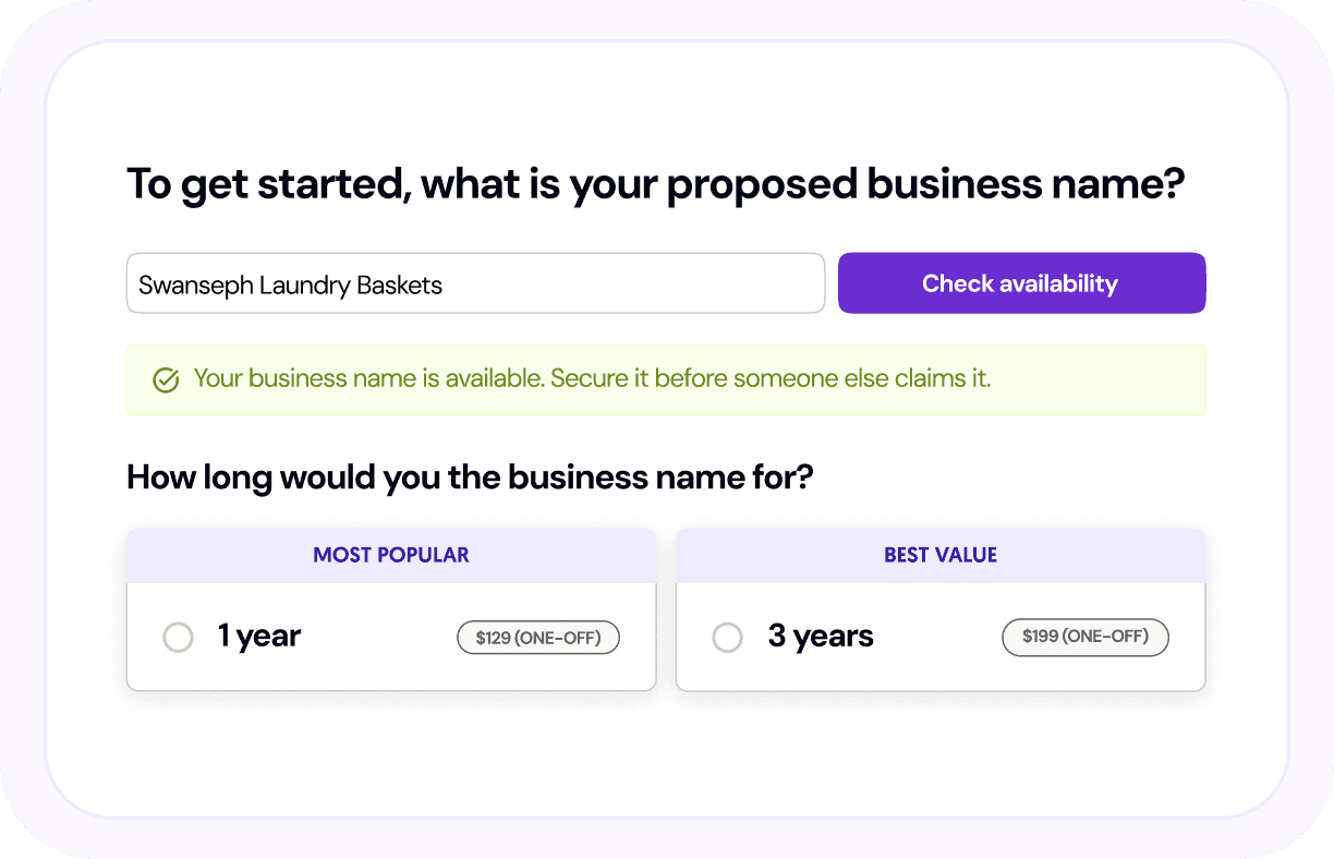 For a one year registration, Lawpath charges $80. If you’d like to register the business name for 3 years, the cost is $152.