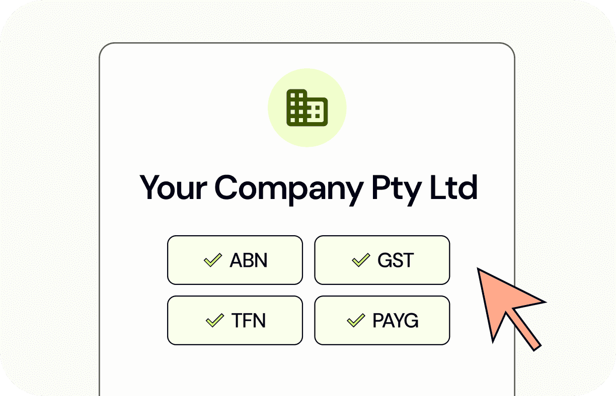 Register for an ABN, ACN, TFN, PAYG and/or business name, all in one guided flow.