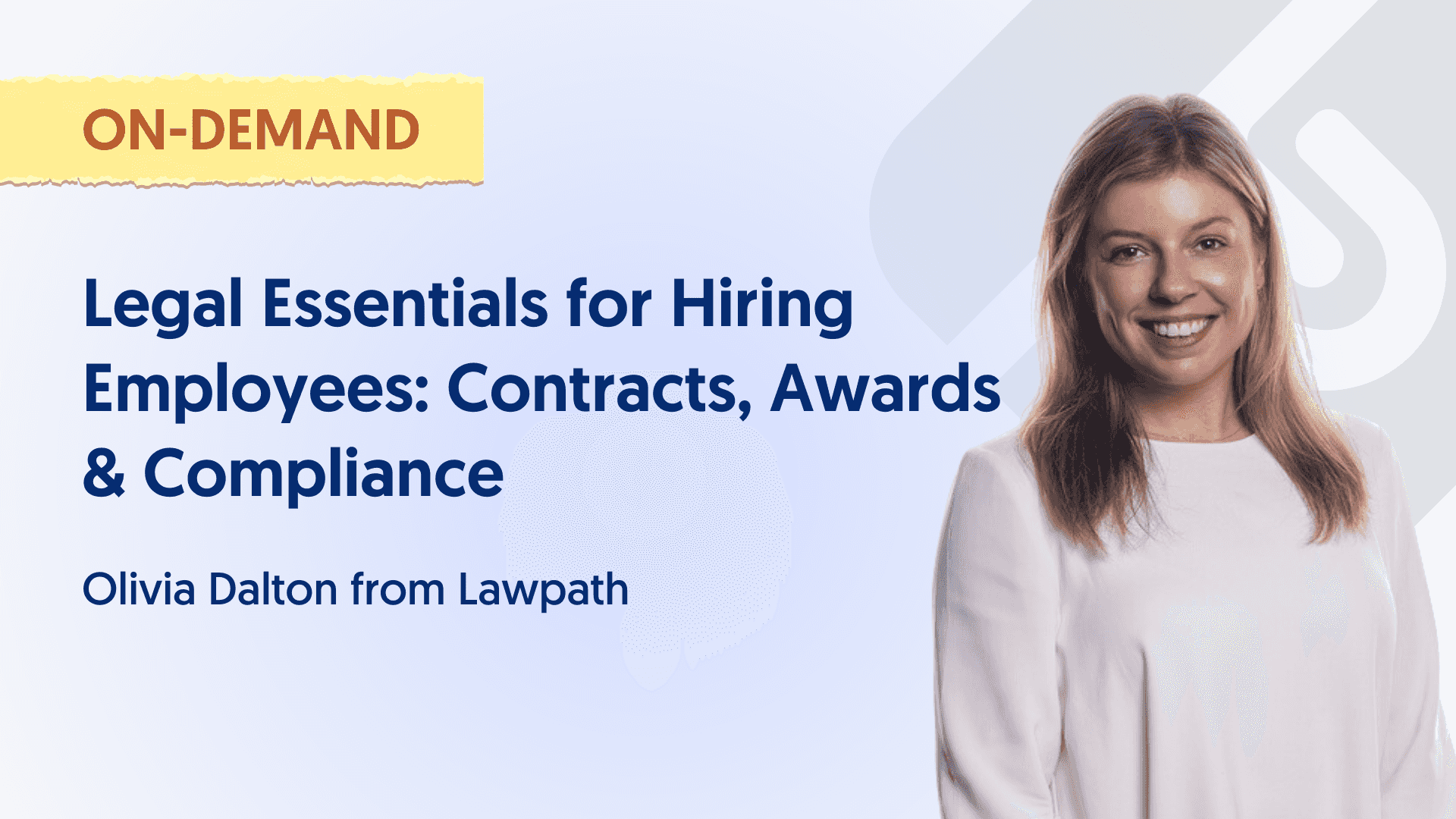 Hiring your first employee? Or growing your team? There are key legal obligations every employer must meet. In this webinar, Olivia Dalton from Lawpath will guide you through the essential employment laws, contracts, and compliance requirements to help you hire with confidence.