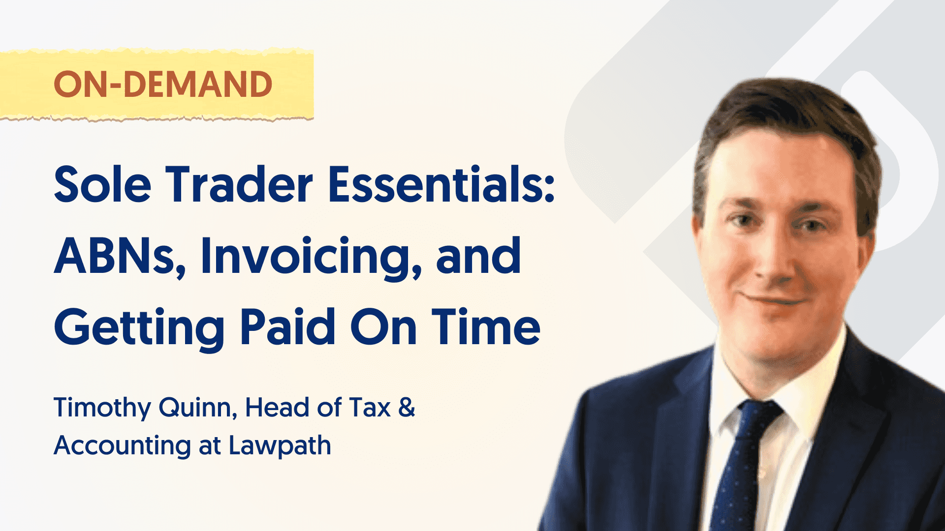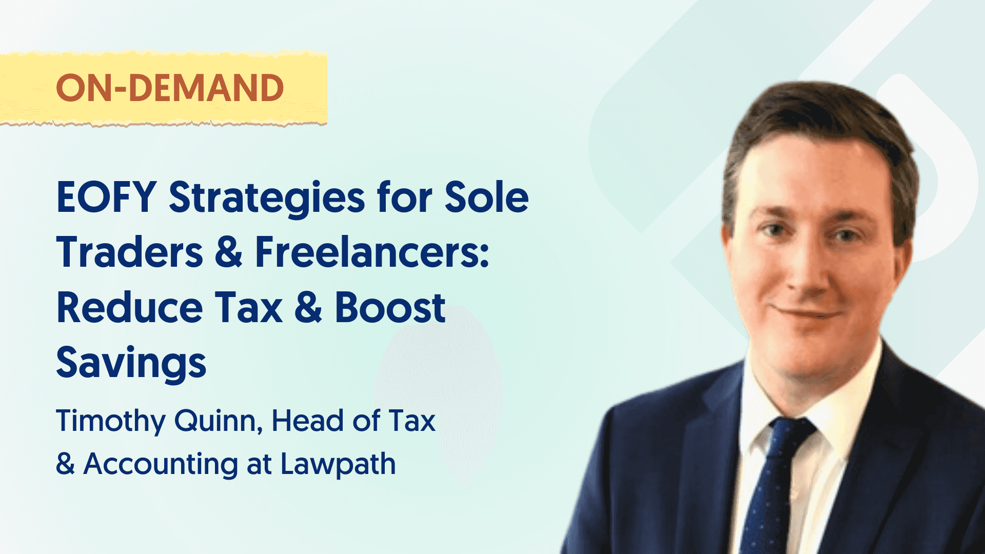 Sole traders and freelancers often face unique tax challenges at EOFY—but with the right strategies, you can maximise your deductions and boost your savings. In this webinar, Timothy Quinn, Head of Tax & Accounting at Lawpath, will break down everything you need to know to stay compliant and get the most out of tax time.