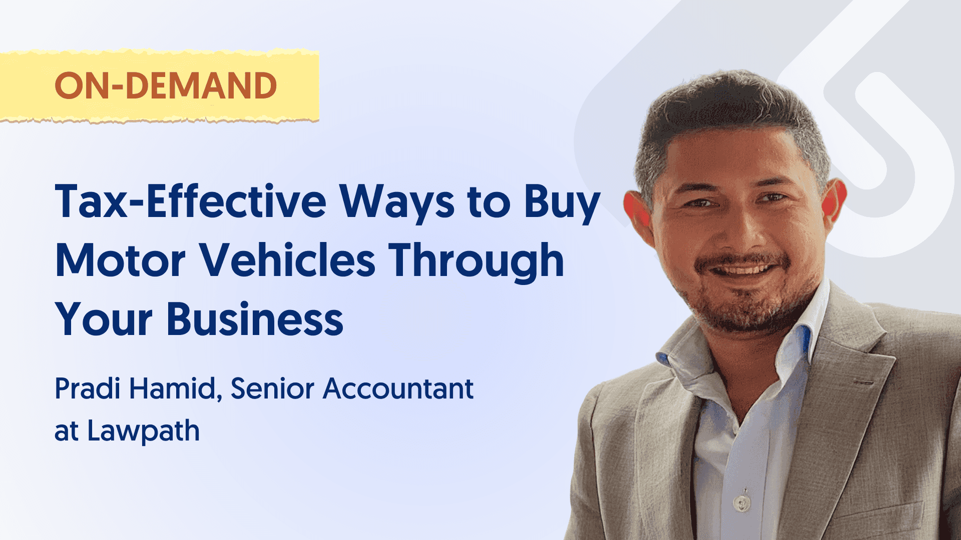 Thinking of purchasing a car through your business? There are smart, tax-effective ways to do it — if you understand the rules. In this webinar, Lawpath’s Pradi Hamid will explain how to structure vehicle purchases to maximise tax benefits, avoid common traps, and stay compliant with ATO guidelines.