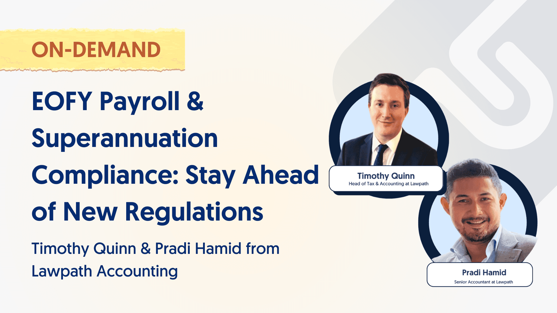 Ensure your payroll and superannuation reporting are accurate and compliant with the latest regulations before EOFY. In this webinar, Timothy Quinn and Pradi Hamid will guide you through updates and best practices for payroll and super compliance.