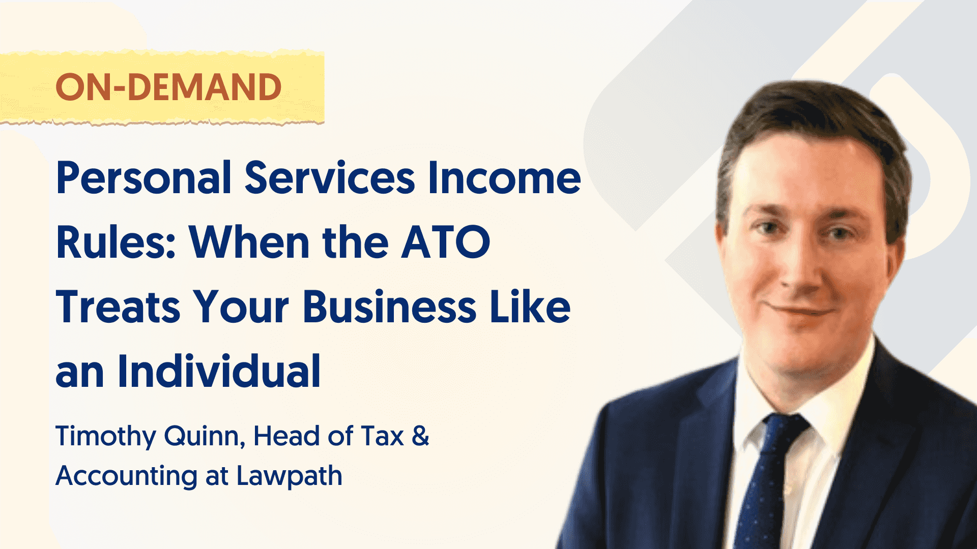 Are you really running a business—or just earning income personally through an ABN? The ATO’s Personal Services Income (PSI) rules can change how your income is taxed, especially for consultants, contractors, and freelancers. In this webinar, Lawpath’s Timothy Quinn will break down what PSI is, how to know if it applies to you, and how to stay compliant without losing key tax benefits.