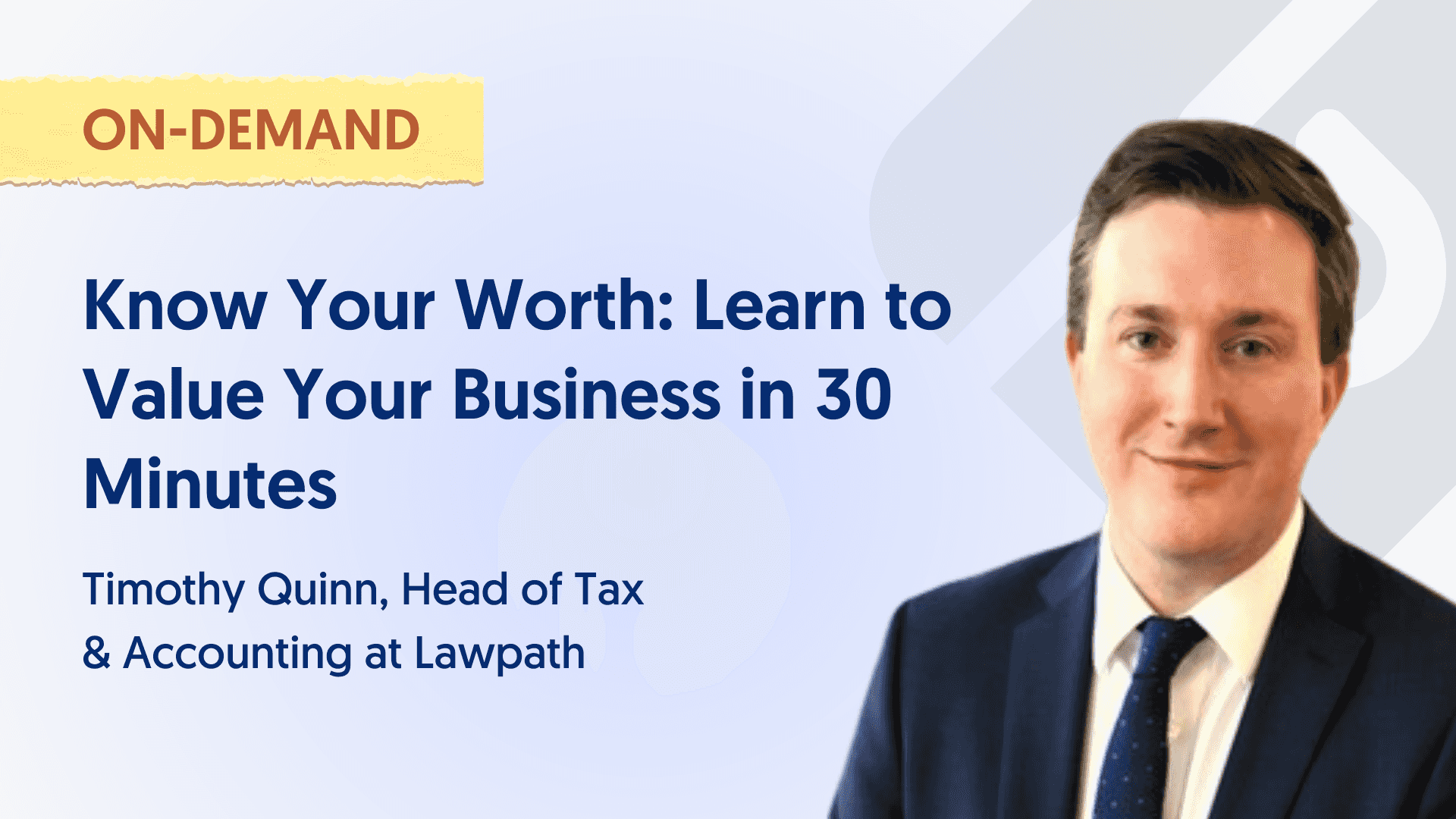 Every business owner should know what their business is worth. Whether you’re planning to sell, attract investors, or simply want a clearer picture of your business health, understanding its value is essential. In this webinar, Timothy Quinn, Head of Tax & Accounting at Lawpath, will break down the key drivers of valuation and show you practical ways to assess your business worth in simple, actionable steps.