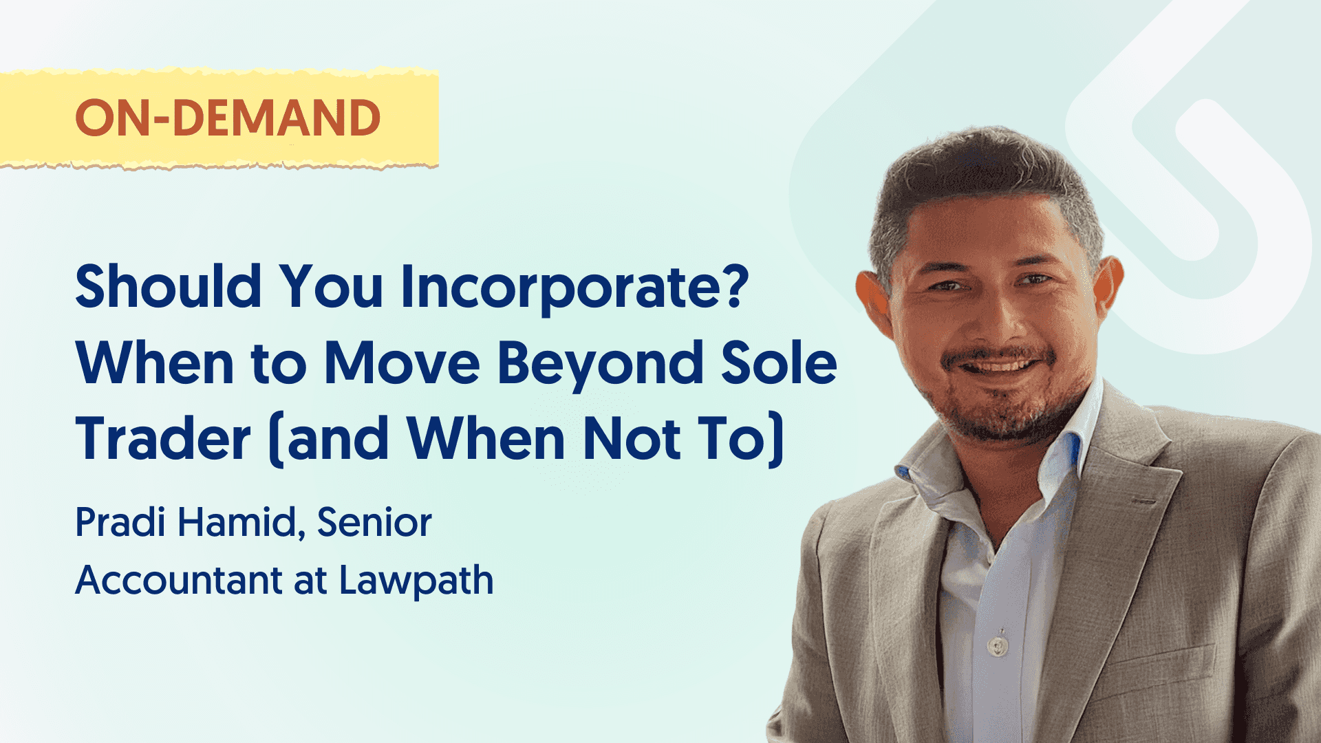 In this webinar, Pradi Hamid, Senior Accountant at Lawpath, will walk you through the accounting and compliance trade-offs between operating as a sole trader and incorporating your business. You’ll learn when switching structures makes sense financially and when sticking with simplicity is the smarter move.