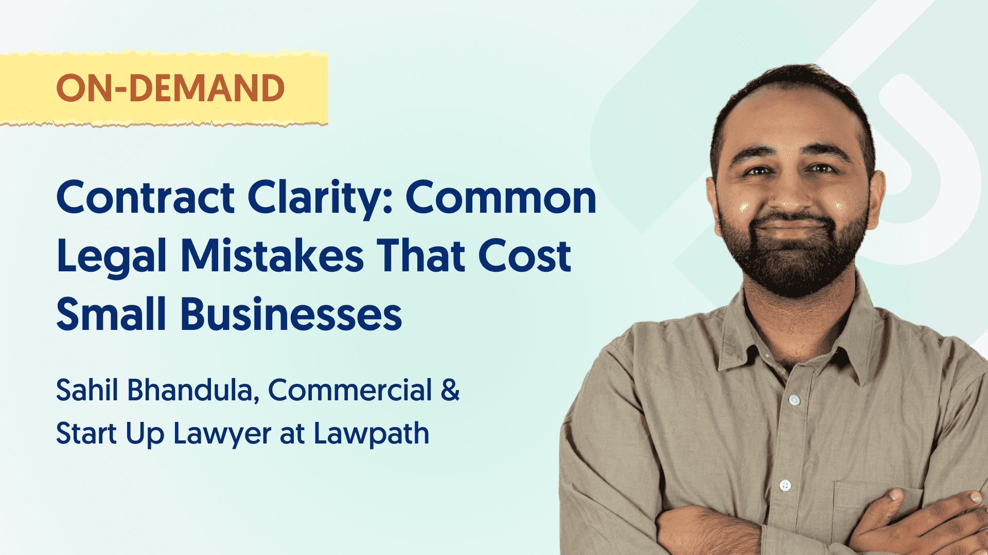 In this free webinar, Lawpath’s legal expert Sahil Bhandula will unpack the biggest mistakes business owners make when drafting or relying on service agreements, NDAs, employment contracts, and client terms. You’ll learn how to spot risky language, fix problems before they escalate, and build stronger, clearer contracts going forward.