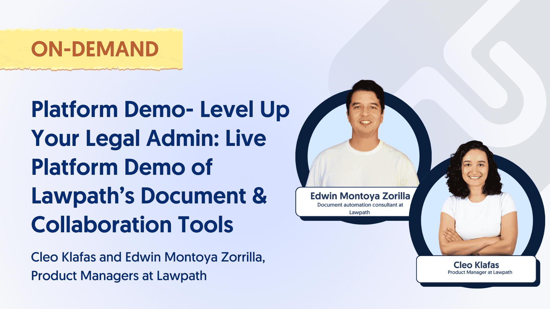 Say goodbye to messy emails and disconnected legal files. In this exclusive live session, Cleo Klafas and Edwin Montoya Zorrilla, Product Managers at Lawpath, will give you a guided walkthrough of Lawpath’s powerful legal documentation and collaboration tools. Whether you're a sole trader or part of a growing team, this demo will show you how to manage legal documents faster, smarter, and more collaboratively.